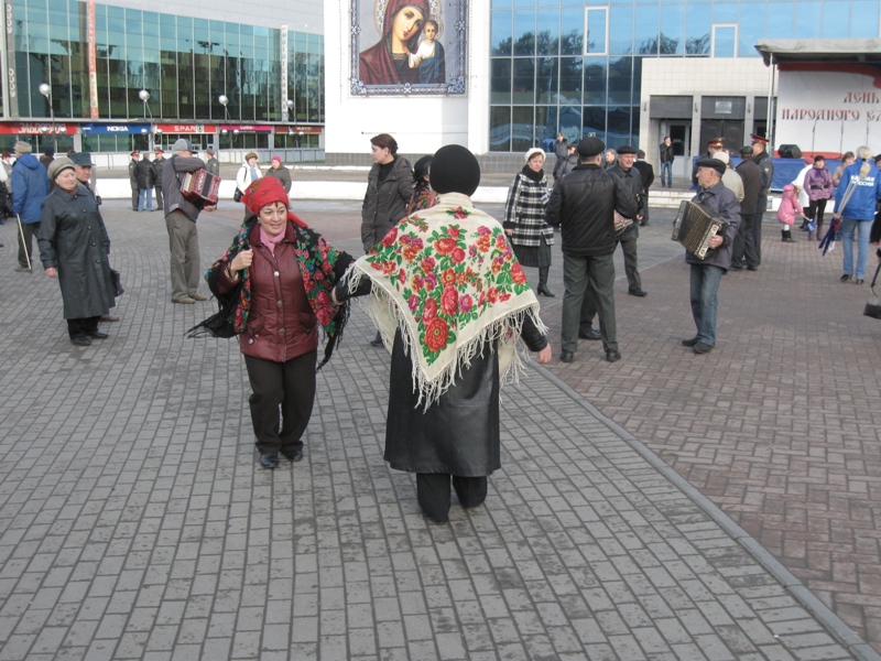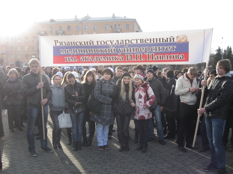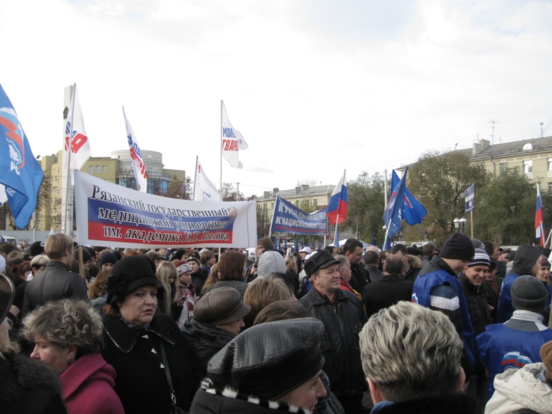 Огромное количество рязанцев пришли на площадь Победы, чтобы отметить победу русского народа в борьбе против польских интервентов. Помимо обычных горожан. праздничный митинг посетили представители исполнительной и законодательной власти региона. Многие пришли со своими семьями, и в толпе можно было увидеть не только людей взрослых и многочисленных студентов, но и немногочисленных детей и подростков. Перед началом митинга горожане пели и плясали под гармошку, слушали патриотические песни, прославляющие современную российскую действительность, и согревались горячем чаем с пирожками.