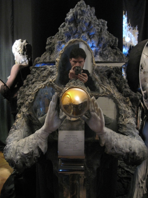 Экспозиция представляет своеобразную театральную постановку, мистерию мифических персонажей. Двенадцать инсталляций, расположенных по кругу, кажется, несут в себе сокровенные знания космоса и человеческой жизни. Тут есть место и евангельским мотивам, и древним сказкам востока, и даже образчикам современной действительности. Последние, к слову, шокируют больше всего. «Стенд деликатного доноса», «Тотем папарацци», «Роботесса и её мотошут» ― всё это вехи современной жизни, которые так или иначе пришлось пройти на своём пути художнику.