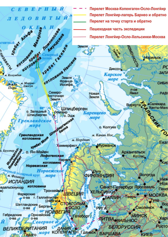 12 апреля 2008 года путешественники из Рязани прибыли на Шпицберген. Архипелаг встретил членов экспедиции штормовым ветром, пургой и морозом. Выяснилось, что в Северном Ледовитом океане очень сильный дрейф льда. После проверки снаряжения, дозакупки продуктов и проведения тренировки уже непосредственно в арктических условиях участники проекта преодолели более тысячи километров до дрейфующего лагеря «Барнео» на самолёте Ан-74.