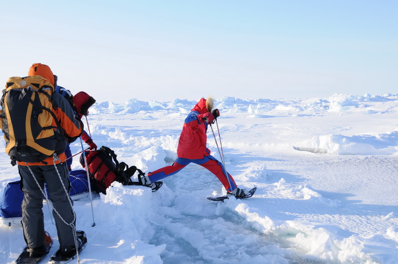 14 апреля вертолёт доставил рязанцев в точку старта, откуда начался пеший поход к полюсу. Через пару дней погодные условия ухудшились, на пути встретились первые разводья, через которые пришлось организовывать переправы.