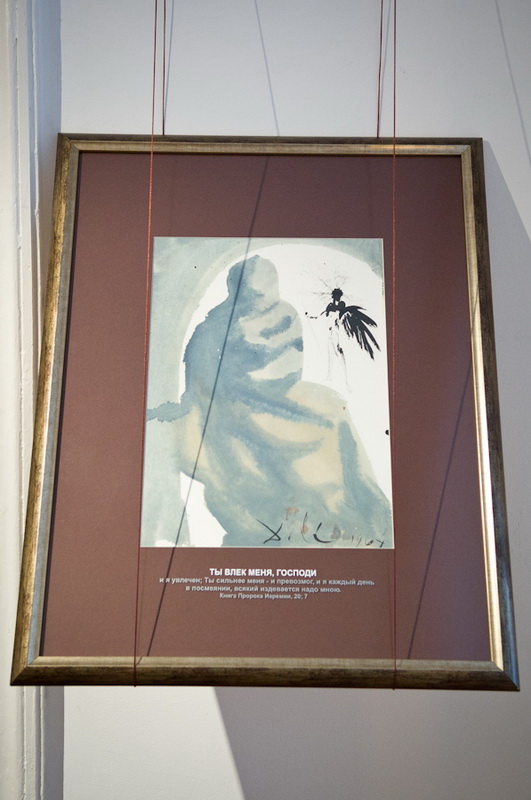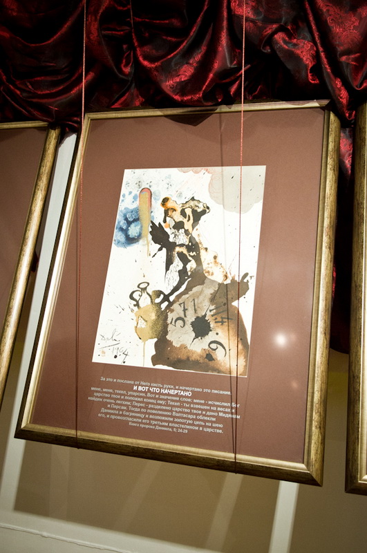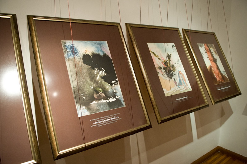 Обратимся к истории. В 1963 году Сальвадор Дали получил предложение от итальянского издателя проиллюстрировать новое издание Библии. Получившаяся серия графических листов, выполненных в смешанной технике, сочетающей карандаш, тушь, акварель, гуашь и пастель спустя четыре года была переведена в литографию — вид тиражной графики, основанный на технике плоской печати. Сегодня серия из 105 листов «Священного писания» существует в 1499 копиях, однако все они разошлись по частным коллекциям по всему миру. Больше всего повезло Америке и странам Европы, в России же аналогов представленной коллекции нет. Даже в каталогах можно увидеть лишь несколько разрозненных листов «Священного писания», то есть большинство работ так и остаются недоступными для отечественного зрителя. 105 экспонирующихся в Рязани литографий были предоставлены крупным итальянским коллекционером, посвятившим около 40 лет жизни изучению творческого наследия великого испанца.