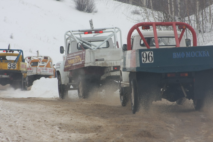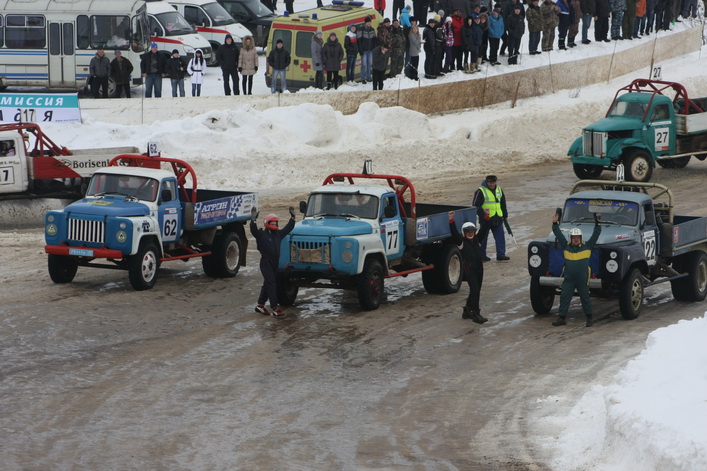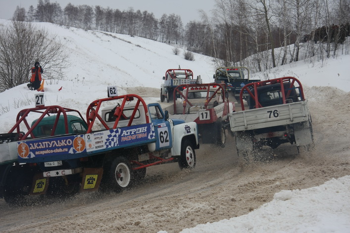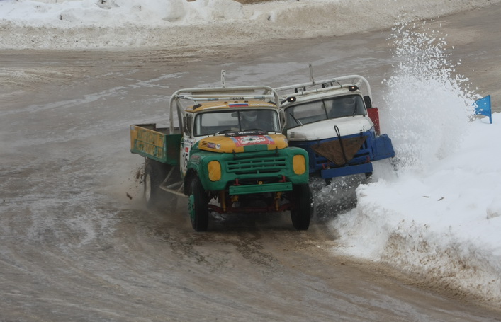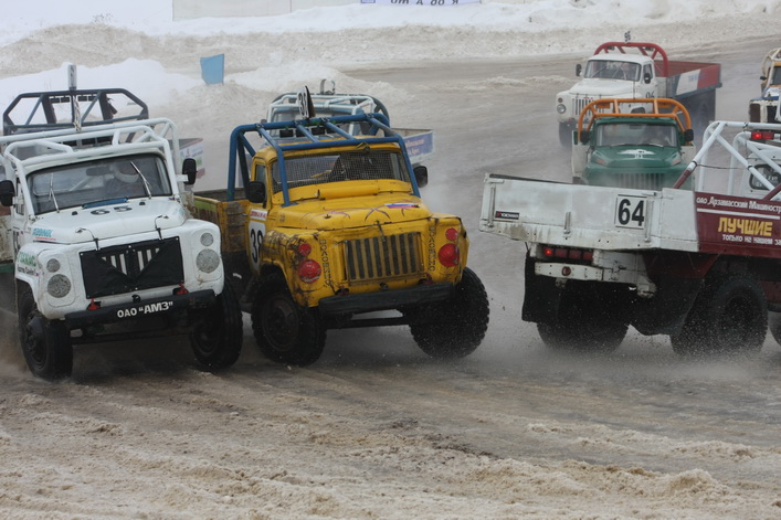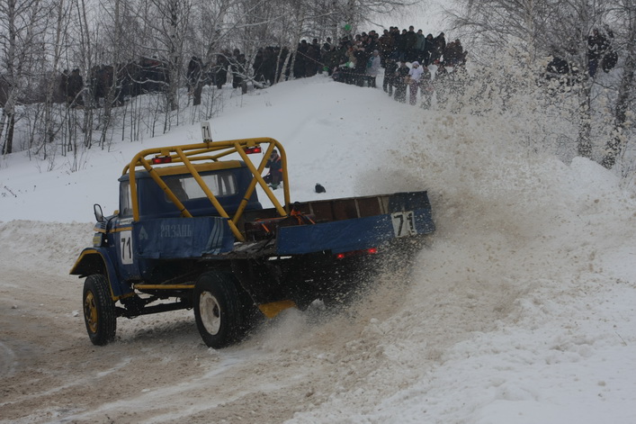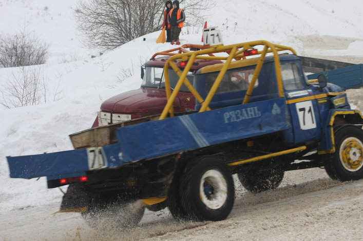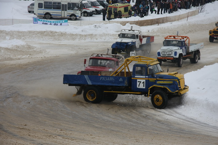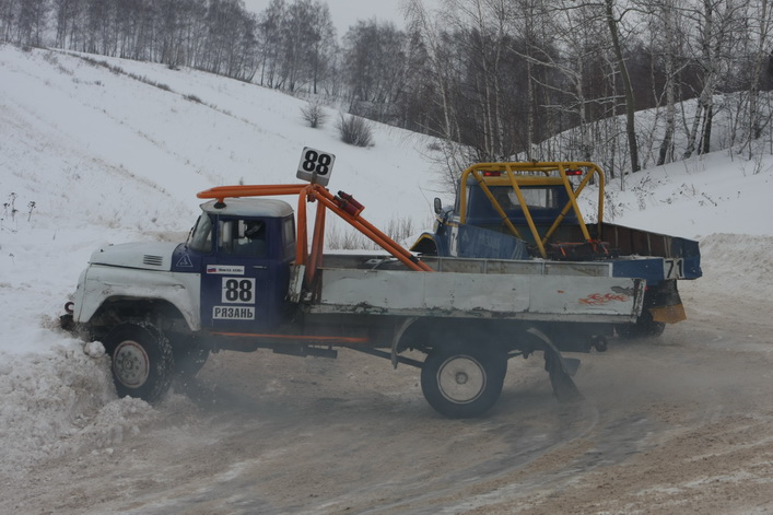 Самый высокий статус на «Русской зиме» имели соревнования в классе грузовиков ЗИЛ-130 ― этап чемпионата России. Среди 16 участников в гонке приняло участие четыре рязанца. Лишь один из них ― Вячеслав Свечников ― вышел в финал, пробившись в решающий заезд из утешительного. Кстати, в последнем зрители несколько минут наблюдали интересный казус: в повороте встали чуть не все участники заезда. Судьи долго не решались остановить утешительный финал, и машины понемногу «рассосались» из затора. В решающем же заезде первым на финише, растолкав всех соперников по ходу гонки, был старший Сергей Сафонов из Москвы, который стартовал с последнего ряда. Вячеслав Свечников застрял в снежном бруствере и занял десятое место.