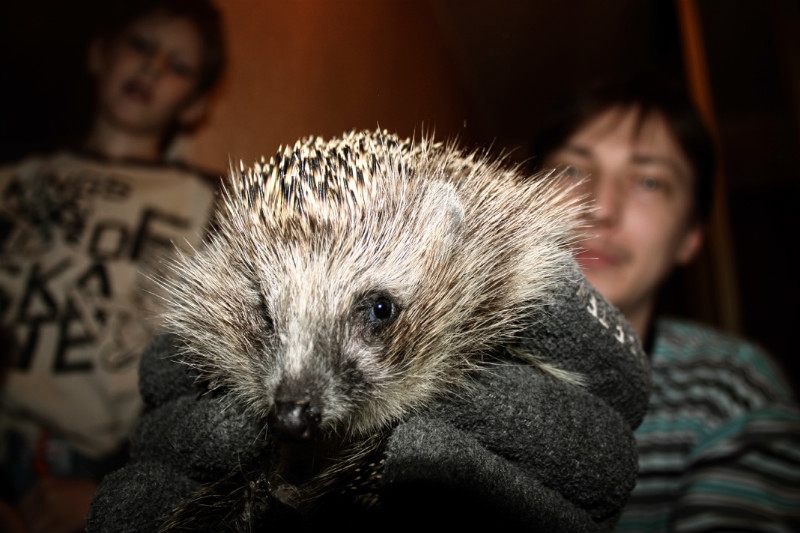 Нашему герою повезло — до него не добралась лиса, к тому же зверь умудрился пережить зиму в городской квартире и даже не задержался на помойке — семья Аренчевых приютила ежа, поспешно сообразив, что с ним нужно что-то делать.