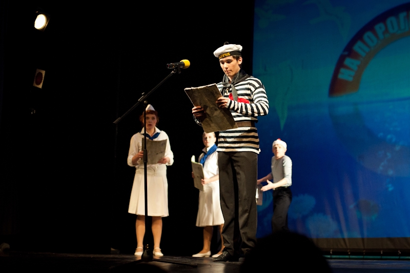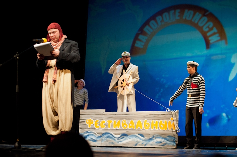 Фестиваль «На пороге юности» открыла притча для детей и взрослых «У ковчега в восемь» (постановка Рязанского театра на Соборной), повествующая о том, как пара пингвинов пыталась протащить на ковчег «нелегала» ― своего друга-пингвина, которому билет оказался не предусмотрен. Далее шла непридуманная история с элементами триллера «Дорогая Елена Сергеевна» Молодёжного театра из Гомеля (Беларусь) о крушении идеалов и взрослении подростков. Театр для детей и молодёжи «Свободное пространство» из Орла привёз мюзикл «Алые паруса» на музыку Максима Дунаевского по мотивам повести Александра Грина. Другие гости из Беларуси ― Минский камерный духовный театр ― показал на рязанской сцене героико-романтическую драму «Блиндаж» о подростках, чудом попавших в укрепления советских войск в Великую отечественную войну. Перевести дух зрители смогли под ангельские песни на спектакле «Летучкина любовь» в постановке Театра юных зрителей им. А.Брянцева (Санкт-Петербург).