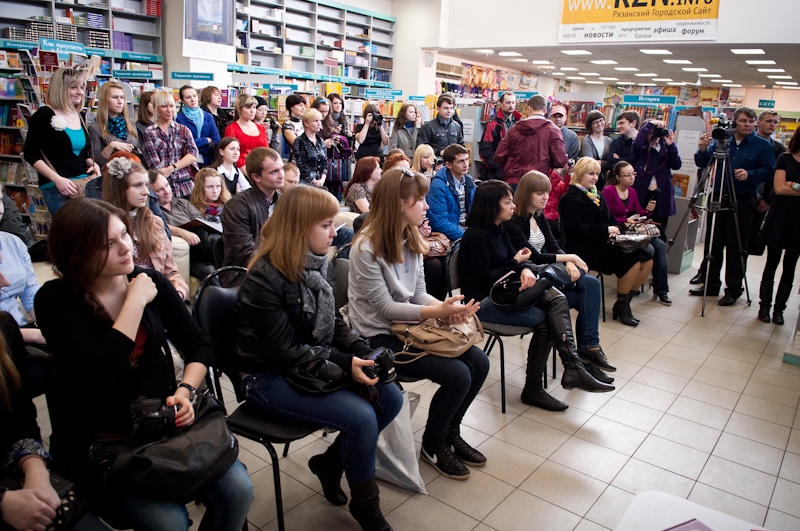 ― Это не первая моя поездка в Рязань. Однажды мы с людьми, которые занимаются туберкулёзом, поехали в местную колонию для несовершеннолетних. Это было года четыре назад, осенью ― тогда я обошла пешком всю Рязань. Сегодня я вернулась, и вернулась, по моему мнению, с очень интересным поводом. Нашему музыкальному проекту уже год. За этот год мы записали альбом, который называется «Знак неравенства», и теперь, соответственно, доделываем пластинку «Знак равенства». Обе сделаны в трудно описываемом жанре, который подразумевает стихи, читаемые под музыку и сплавленные с рок-музыкой.