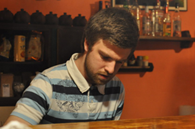 ― Ну да. За барной стойкой ― гитарист Артём Филимонов. Не зазорно подавать кружки с пивом?