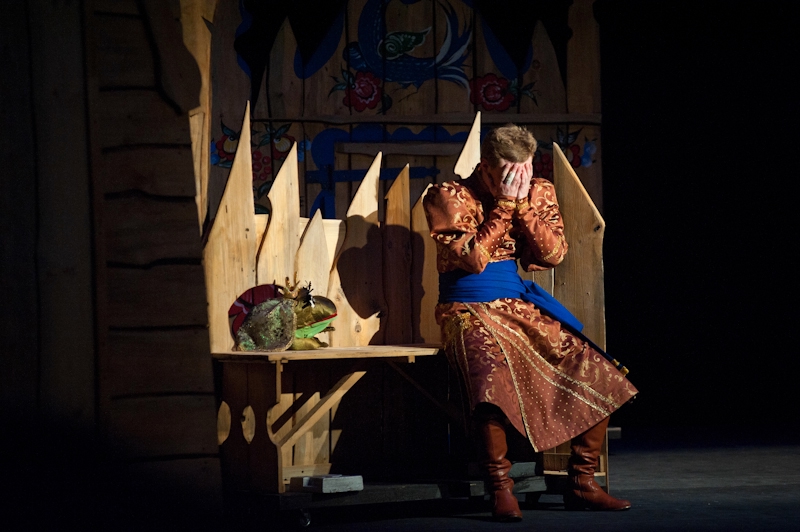 О подготовке нового сказочного спектакля новый художественный руководитель театра Марина Есенина рассказывала давно, ещё на встрече с журналистами, приуроченной к вступлению её, Есениной, в новую должность. Тогда Марина Викторовна призналась, что раз спрос имеется именно на сказки, то труппа готова пойти на поводу у публики. Правда, не забыла упомянуть, что в загашнике имеются разработки серьёзных и взрослых спектаклей, которые непременно увидят свет, но чуть позже. Новый сказочный спектакль обернулся «Царевной-лягушкой» авторства Михаила Вольпина в режиссёрской версии самой Марины Есениной. Выбор автора беспроигрышный — знаменитый драматург, классик русской киносказки, из-под чьего пера вышли сказочные бестселлеры советского времени «Морозко», «Огонь, вода и медные трубы», «Варвара-краса, длинная коса» и многое-многое другое.