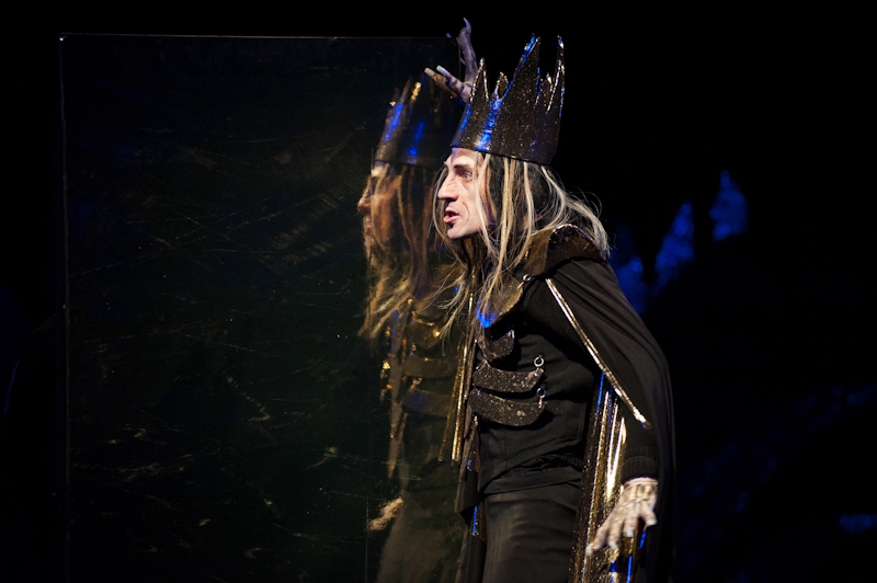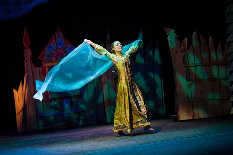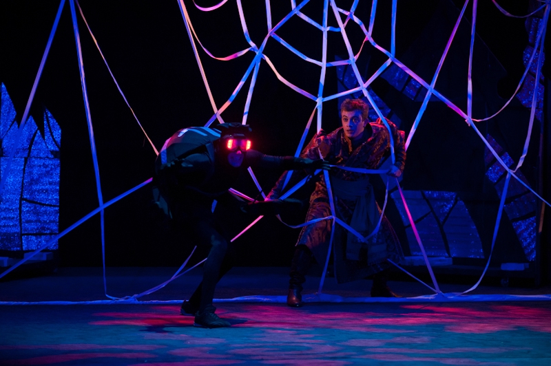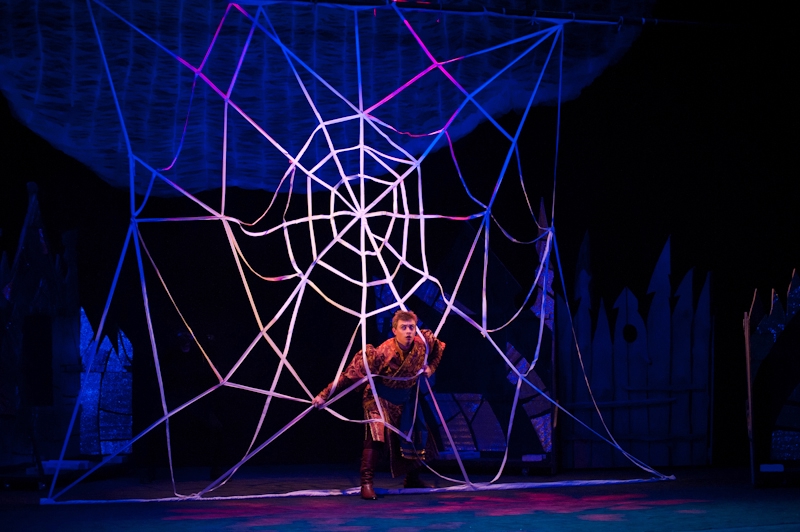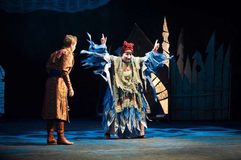 Да и сам же спектакль вышел под стать старым любимым советским сказкам, однако чуть разбавленный модным экшеном и едва ли не триллером в соответствии с днём сегодняшним. Самых маленьких зрителей на постановку не приглашают — малыши вряд ли придут в восторг от жуткого Кощеева царства или шестилапой нечисти с красными горящими глазами. А вот ребята постарше мистику оценят: и страшное зеркало Кощея, и гигантскую паутину, и жуткую золотую статую, в которую превращается Василиса. Страх нагнетает и музыка Владимира Устинова. Словом, атмосферность — бесспорная сильная сторона «Царевны-лягушки».