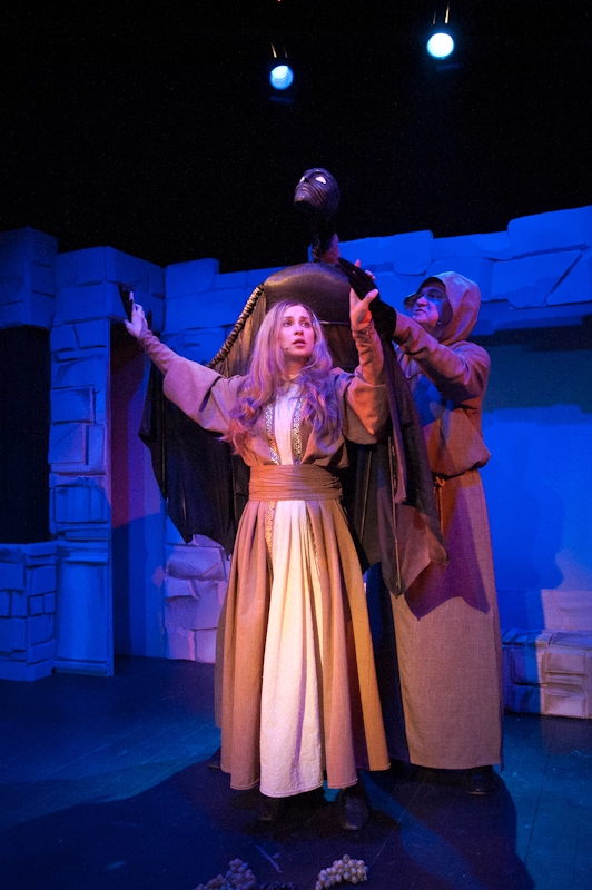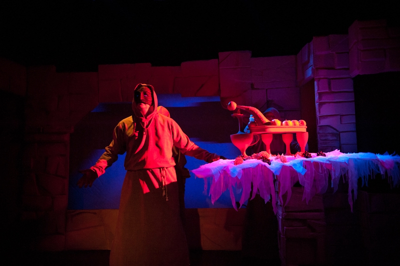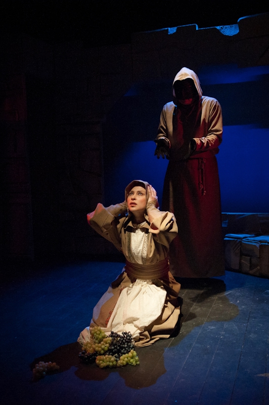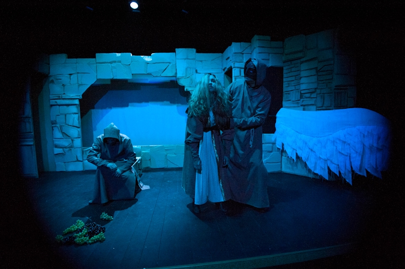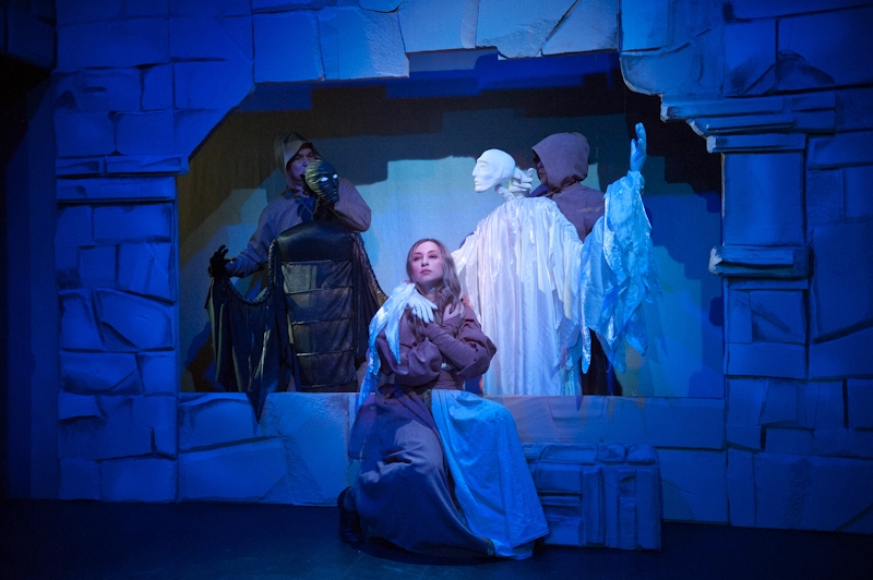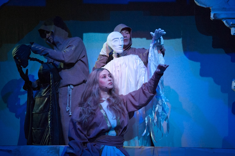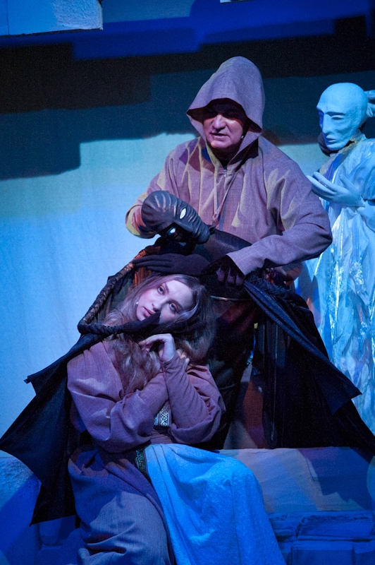 Выбрать лучший, самый острый и двусмысленный момент для постановки Валерий Шадский умеет, наверное, как никто другой. Спектаклем «Ищу человека. Диоген», рассказывающим о предвыборных махинациях в древнегреческом полисе, театр открыл нынешний сезон аккурат накануне настоящих выборов. Свежий «Демон» вышел в момент непростых отношений с Кавказом и неоднозначной клерикальной и антиклерикальной ситуации в России. Кажется, за судьбу каждого взрослого спектакля кукольного театра есть повод переживать и беспокоиться. При этом о «Демоне» беспокоились вдвойне. Дело в том, что режиссёром спектакля выступил не сотрудник театра, а «приглашённая звезда» — Заслуженная артистка РФ, режиссёр Елена Оленина, что для «кукол» — ситуация нетипичная. Постановочная группа тоже оказалась разношёрстной: художник Андрей Володенков из Москвы, а композитором выступила автор музыки практически ко всем спектаклям театра Альбина Шестакова. Роли распределились среди ведущих артистов театра: Тамара — Светлана Борисова, Демон — Валерий Скиданов, Ангел — Валерий Рыжков. Кроме того, в спектакле участвует и сам худрук Валерий Шадский, именно его голос открывает и закрывает «Демона». И это — первая несомненная находка спектакля, ведь Шадский собственной персоной нынче на сцене появляется лишь в должности руководителя, и молодые поклонники театра вряд ли отдают себе отчёт, насколько хорош он в актёрской ипостаси и роли чтеца.