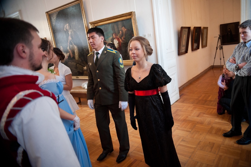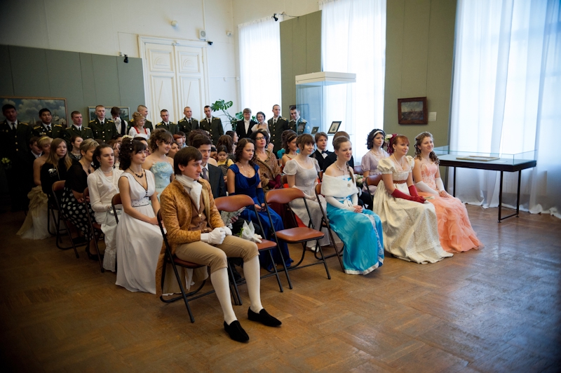 13 декабря в залах Рязанского художественного музея был дан Зимний бал. Мероприятие, подготовленное силами студии «Белый балъ» и факультетом педагогики, психологии и социальной работы Рязанского государственного университета, можно считать традиционным. Тематические Зимние балы проходят в музее уже третий год подряд. В прошлый раз молодёжь (а именно местные студенты и курсанты составляют подавляющее число гостей и участников) воспевала эпоху Пушкина и вдохновлялась красотами Версаля. Теперь пришло время вспомнить славную военную историю России — нынешний Зимний бал, прошедший в Год истории, был посвящён 200-летию победы русского оружия в войне с Наполеоном. В честь этого хозяева Зимнего бала разбавляли танцы историческими анекдотами и миниатюрами на тему войны 1812 года и победы Александра I.