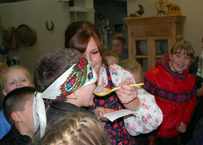 На снимке: И с закрытыми глазами — вкусно! (Фрагмент интерактивной программы для детей в Историко-краеведческом центре). Фото из архива Историко-краеведческого центра Шацкого района