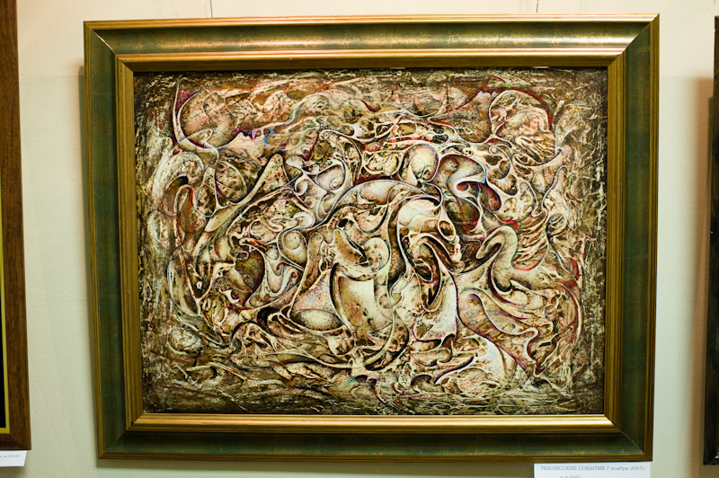 Сипрошвили действительно невозможно спутать с местными коллегами по цеху. На фоне торжествующего реализма и натурализма с единичными проблесками других жанров и стилей гротескные и метафоричные, многослойные и многосмысловые холсты выглядят стаей белых ворон и плохо вписываются в привычные рамки.