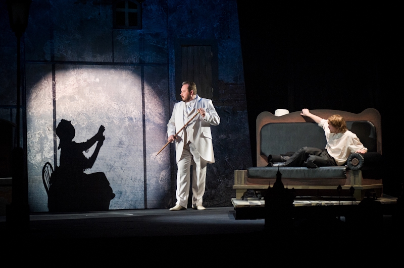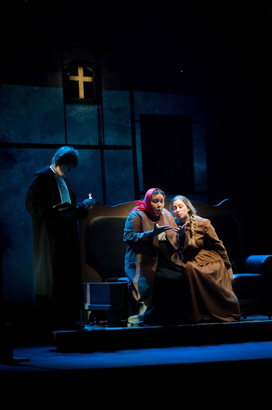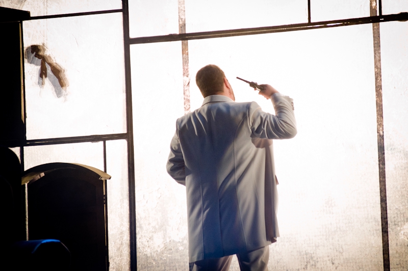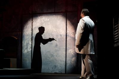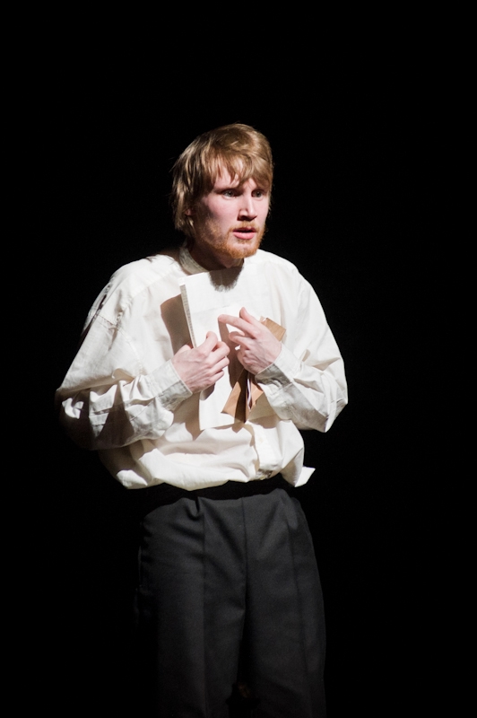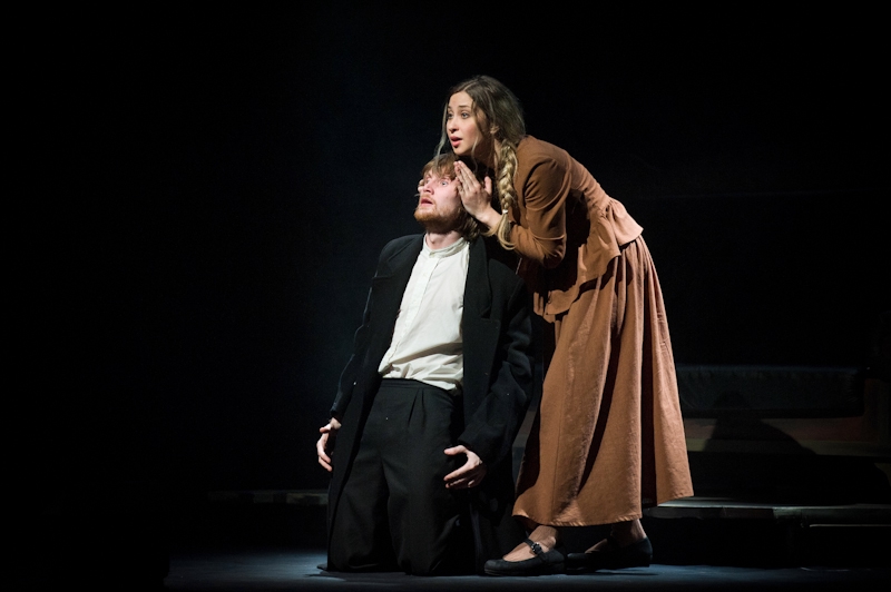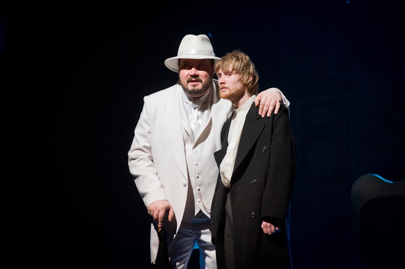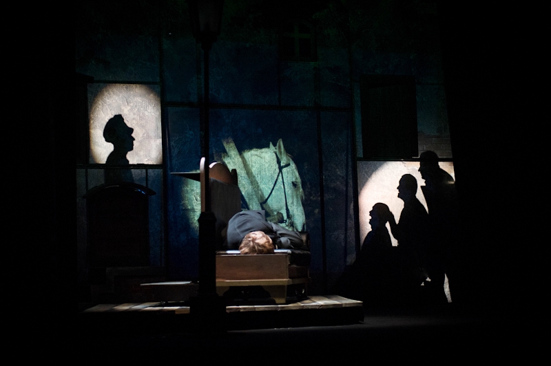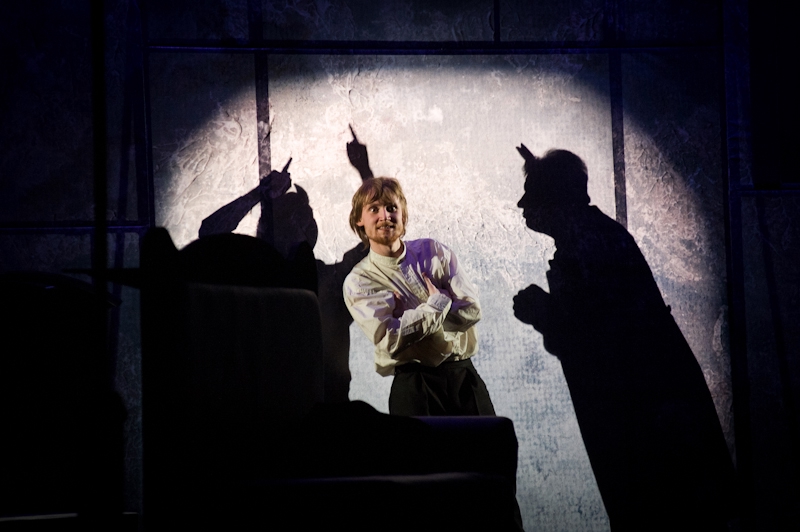 В ролях задействовали практически всю труппу театра, даже хватило на долю директора Константина Кириллова. Отец рязанской антрепризы на сцене нынче появляется редко, уйдя с головой в хозяйственные дела. И глядя на его по-барски роскошного Аркадия Свидригайлова, тут же становится обидно за сложившееся положение дел. Других неожиданных актёрских появлений в постановке нет: Расколькников — разумеется, Василий Уточкин, Соня — само собой, Светлана Борисова (Екатерина Волкова в другом составе), следователь — Владимир Коняхин, Лужин — Валерий Скиданов, Мармеладов — Валерий Рыжков… В какой-то момент начинает казаться, что это не режиссёр грамотно распределил роли, а сам Достоевский написал роман специально под рязанскую труппу — настолько все артисты на своих местах и при своих типажах. Подобная фантазия могла бы вызвать возмущение, однако после топора в голове процентщицы и при условии общей иллюзорности происходящего, тут вряд ли чему-то можно удивиться. И авансцена, вынесенная далеко в зрительный зал, поражает лишь в первые секунды, а потом кажется, что она тут была всю жизнь, а если и не была, то непременно должна была быть. И театр теней, перемежающийся с привычным действием, после первого «ах!» выглядит таким родным и уместным. Непривычные для нашего города сценические находки показываются не с позиции «мы и вот так можем!», а тонко и деликатно вплетаются в канву всего спектакля, заставляя смотреть во все глаза.