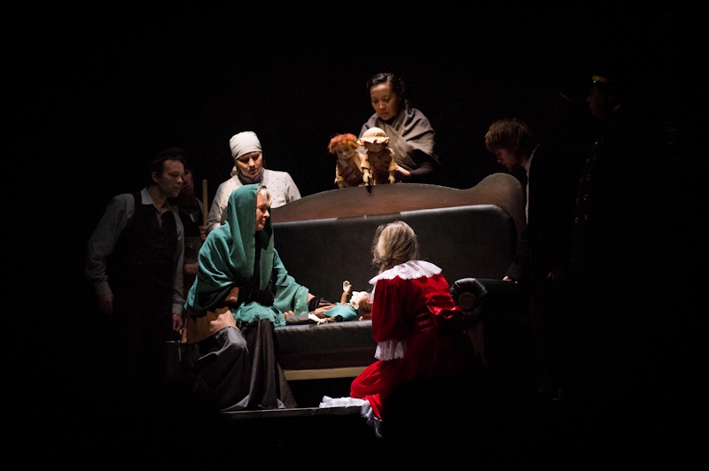 С собой на рязанскую сцену режиссёр захватил главного художника Белорусского театра кукол Валерия Рачковского. Данный творческий дуэт хорошо известен не только у себя на родине, но и в Европе. А в России их работа (чеховский «Вишнёвый сад» в постановке мытищинского театра «Огниво») пару лет назад была даже номинирована на «Золотую маску». Кроме того, в дружественной делегации засветился Павел Кондрусевич, ответственный за музыкальное оформление. Одним словом, новый рязанско-белорусский спектакль имел все основания интриговать публику ещё задолго до премьеры. Выбор произведения оказался за гостем. Представить, что рязанский коллектив взялся бы за Фёдора Михайловича самостоятельно, довольно сложно. Пушкинский «Пир во время чумы», «Маленький принц» Экзюпери, булгаковский «Мастер и Маргарита»… (тоже, кстати, с приглашённым режиссёром) совпал с господствующими мистико-романтическими настроениями взрослой сцены театра кукол. А вот угрюмое, тяжёлое и болезненное «Преступление и наказание» выглядит тут белой вороной.