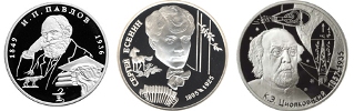 24 сентября 1999 года рязанскую тему в этой серии продолжил первый русский лауреат Нобелевской премии Иван Петрович Павлов. Монета, выпущенная Московским монетным двором, приурочена к 150-летию со дня рождения великого русского физиолога. Правда, тираж этой памятной серебряной монеты, сохранившей номинал в 2 рубля, уменьшился до 15 тысяч экземпляров, а вес возрос до 15,55 г. Рыночная цена на сегодняшний день составляет 1,5 тысячи рублей.