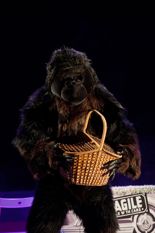 А уж что точно не является жульничеством и заигрыванием с публикой, так это возрастное ограничение «строго до 18 лет». И дело тут даже не в наличии грубой лексики или недвусмысленных намёков на пикантные отношения главной героини с многострадальной обезьяной. Боюсь, для излишне молодого зрителя спектакль и вправду окажется вульгарной юмористической постановкой про секс с обезьяной на заднем сиденье лимузина. Для того, чтобы понять и разобраться, что к чему, не помешает выйти из пубертатного возраста и оставить в прошлом легкомысленные увлечения юности, сменив их на пивной живот и нелюбимую работу. Сделать это нужно хотя бы для того, чтобы было по чему сокрушаться, когда занавес будет задёрнут после финального поклона артистов.