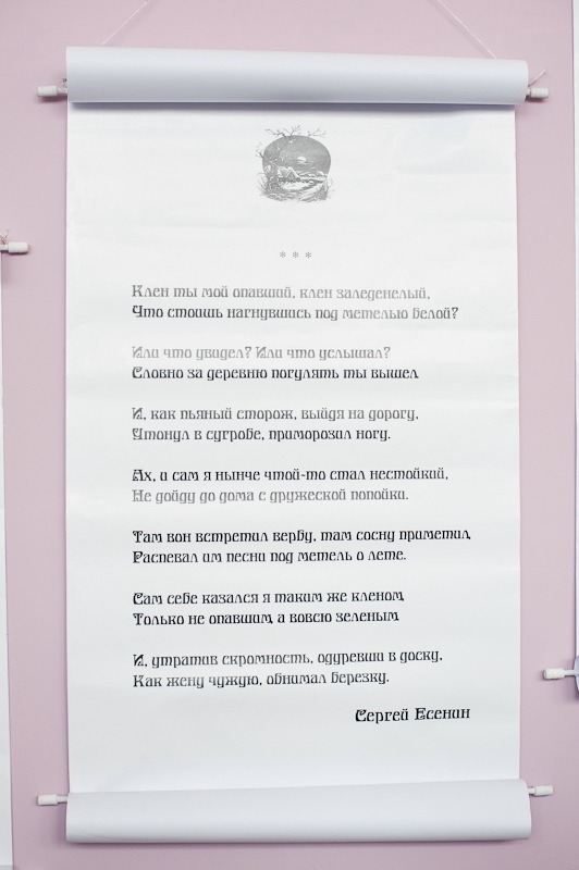 12 апреля в выставочном зале на втором этаже Муниципального культурного центра открылся финальный вариант выставки «Поэты все единой крови: Гейне и Есенин». В центре экспозиции портреты поэтов, свитки со стихами, стол с книгами и лестница, ведущая в небо.