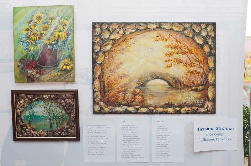 Литературную экспозицию обрамляют фотографические стенды, знакомящие зрителей с немецким путешествием выставки и группы «Feelin`s», а также мини-выставки друзей проекта. Здесь можно познакомиться с работами детской художественной студии Алёны Ларионовой из русско-немецкого центра «Applaus», рисунками детской студии Мюнстера и воспитанников детского сада №138 Рязани, благотворительного фонда помощи детям-инвалидам «Наши дети» и детской творческой студии «Колибри» Людмилы Пронкиной, а также взглянуть на экспозицию работ немецкой художницы Татьяны Мильке.
