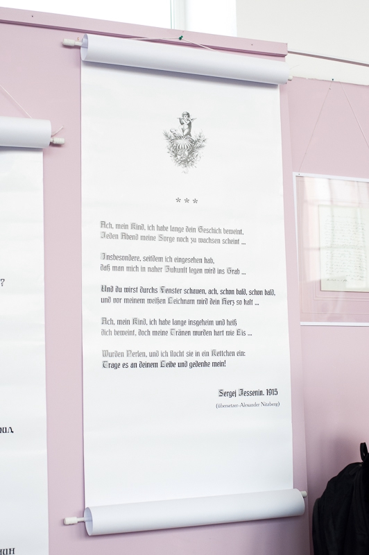 Почувствовать причастность к проекту можно не только в духовном плане, но и в самом что ни на есть физическом. Всех вдохновившихся посетителей выставки организаторы приглашают присесть за стол и оставить свой след в истории — написать свои мысли о прочитанном, о России, о Германии, о наших культурах и нашем будущем. Всё это станет частью экспозиционного проекта выставки, обещает Светлана Шетракова. На выставке вообще можно «похозяйничать» — например, вытащить свитки, спрятанные в корзинах и прочитать напечатанные на них стихи. А можно просто посидеть под горящим парковым фонарём, размышляя о том, как два уникальных гения могут соприкоснуться в рамках одного проекта, невзирая на, казалось бы, непреодолимые географические и исторические препятствия.
