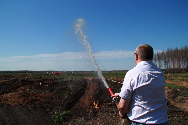 — Потери в пожарах 2010 года достаточно значимые, но и объёмы работ по лесопосадке, которое проводит лесное хозяйство тоже значительные. Ежегодно площадь посадки в Рязанской области составляет 5 тысяч 650 гектаров — это четвёртая часть территории города Рязани с её промузлами и жилыми кварталами. Всё это делают люди вручную с помощью меча Колесова, — отметил Кудинкин.