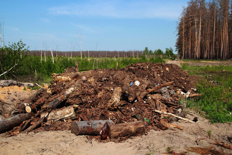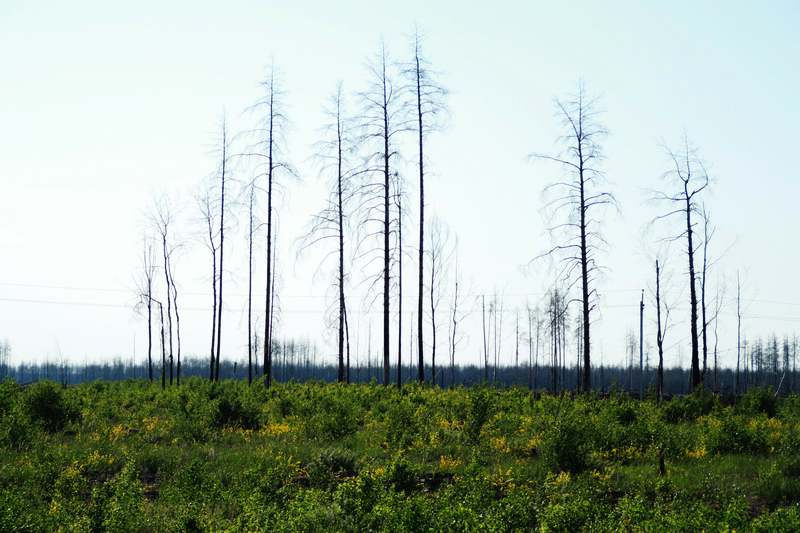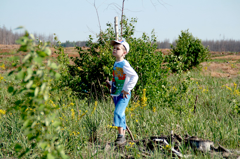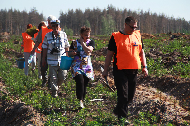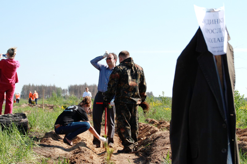 Пока пепелище потихоньку зарастает березняком, человек не забывает помогать лесу воротить былую мощь. Национальный день посадки леса массово отмечали в Передельцах.