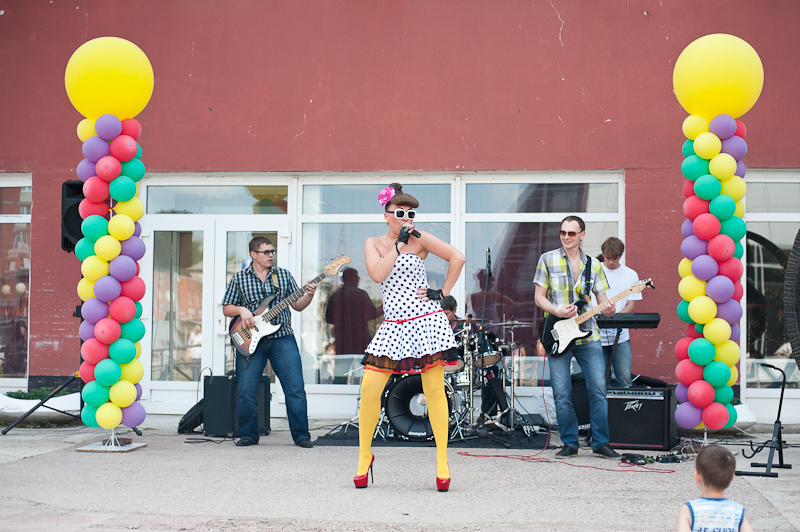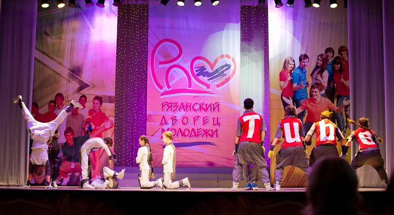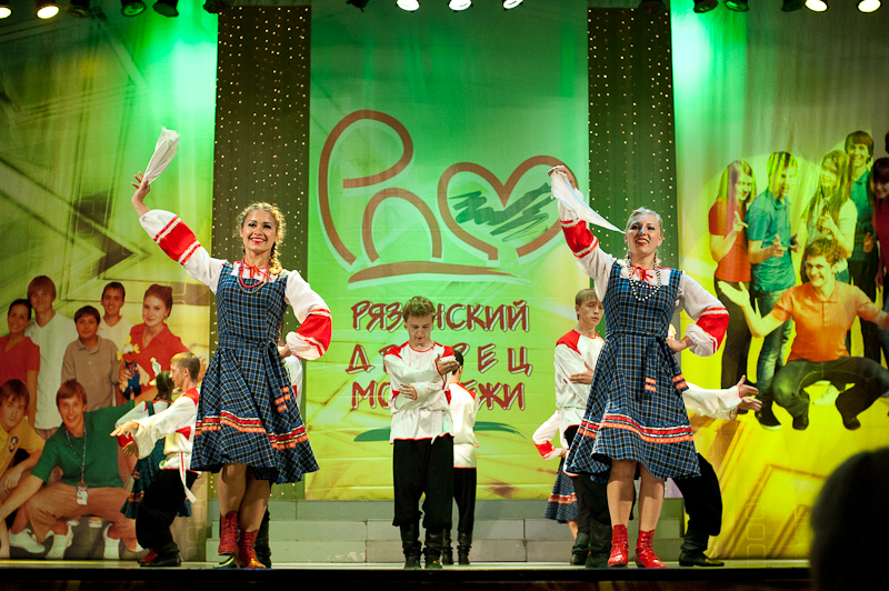 Эпицентром гуляний в День молодёжи стал, как несложно догадаться, Рязанский дворец молодёжи. Торжественные мероприятия были запланированы на 17.00, но в выигрыше оказались те, кто пришёл на место на час, а то на два раньше заявленного срока. Гуляния начались на улице, благо перед входом во дворец оказалась спасительная тень, в которой прятались от палящего солнца выступающие артисты. Слышней всего оказались вокальные коллективы и отдельные солисты, причём пели они довольно неплохо, некоторые хорошо, а отдельные так и вообще отлично. Наибольшим успехом пользовались каверы на старый советский рок-н-ролл типа хитов группы «Браво» или незабвенной «Шизгары». Одуревший от жары народ пританцовывал под заводные ритмы.