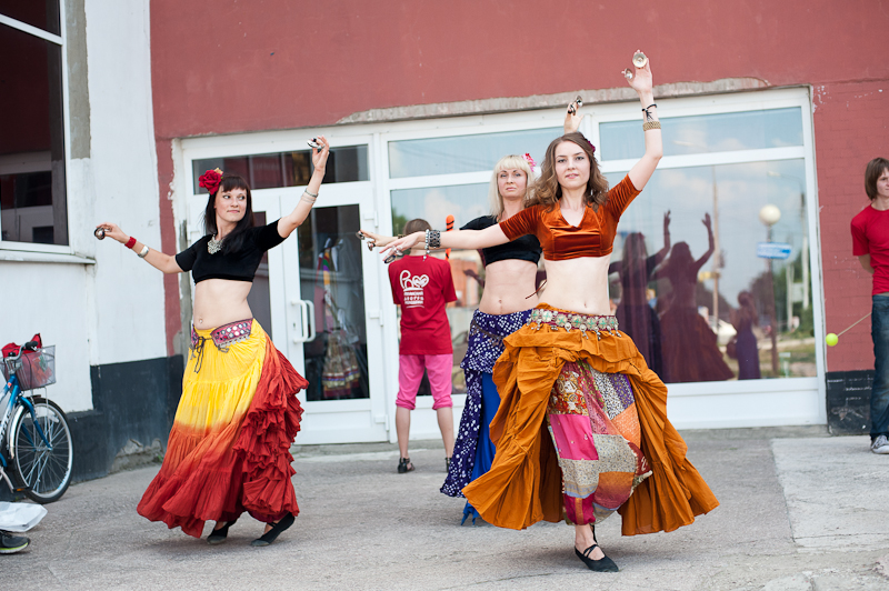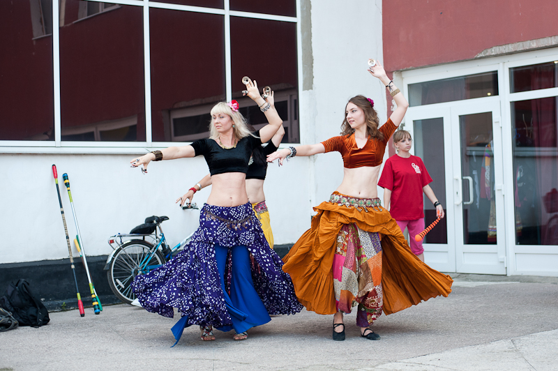 В паре метров от импровизированной концертной площадки ребята крутили пои. Развлечение это во Дворце молодёжи какое-то хроническое — чуть ли не каждый вечер в фойе дворца молодёжи можно обнаружить бодрую тусовку мальчиков и девочек, крутящих веера, посхи, пои, да и всё, что подворачивается им под руку. А вот танцоров трайбл-танцев найти не так просто. Зато полюбоваться на диковинно разодетых девушек, томно и ритмично покачивающих бёдрами под ритм цимбал или сагатов, можно было как раз на Дне молодёжи. Фойе Дворца молодёжи традиционно отвели под ярмарку симпатичных девайсов. Здесь же проходил батл среди хип-хоп ориентированной молодёжи. Танцевали самые стойкие, ибо коридоры дворца не оборудованы кондиционерами, открыть окна никто не смог или догадался, так что площадка превратилась в настоящую баню. Взмыленные бибои и бигёрлы демонстрировали чудеса выносливости, выделывая па под речитативы кумиров. Студии «Белый балъ» повезло намного больше: ребята разместились в зале танцевального клуба «Грация», где температурный режим оказался более чем щадящий. Дамы в кринолинах кокетничали с кавалерами в камзолах под музыку давно прошедших эпох. Не обошлось без диковинных современному взору танцев и мастер-классов.