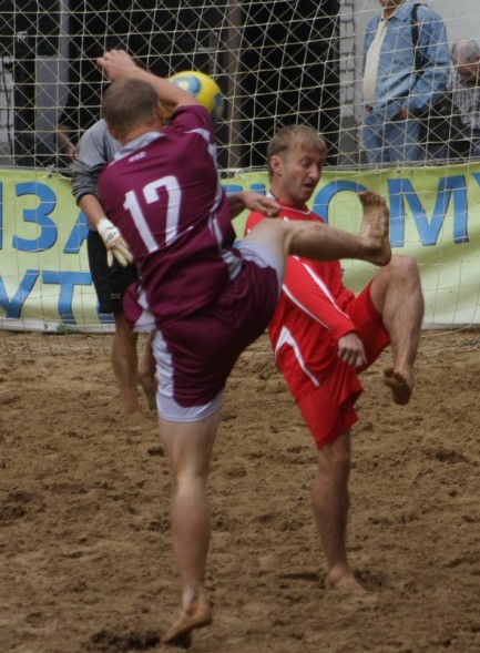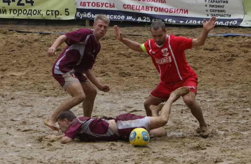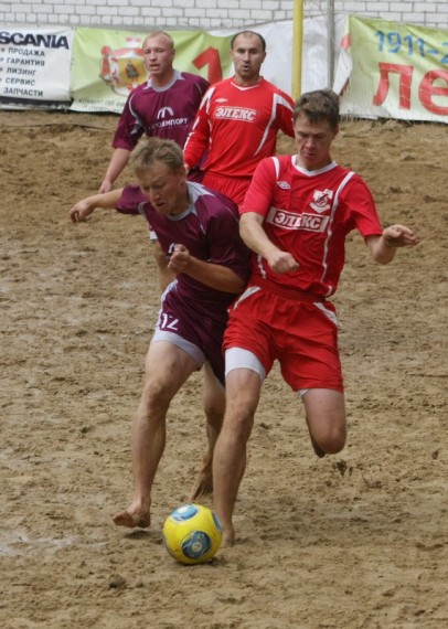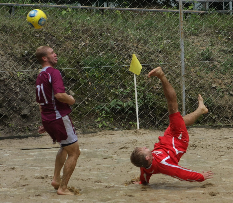 После ливня песчаная площадка «Авиатора» больше напоминала болото, нежели пляж. Ходила шутка, что турнир по пляжному футболу превратился в соревнование по болотному футболу. В первом полуфинале дня белгородский «Легион» спокойно и почти в одни ворота сыграл со «Смоленскими бриллиантами», выиграв со счётом 9:2. Второй полуфинальный матч прошёл на значительно более высоком эмоциональном и психологическом уровне: рязанское дерби «Элекс-Фаворит» – «Автоимпорт» стало принципиальным матчем для обоих соперников. Стартовый рывок в первом периоде сделал «Элекс-Фаворит» — 2:0. Во втором «Автоимпорт» достал соперника — 3:3. «Красные» (цвет формы «Элекс-Фаворита») дважды выходили вперёд, но фиолетовые («Автоимпорт») каждый раз выравнивали положение — 5:5. Эмоции в матче порой переливали через край. Соперники винили судей и друг друга в различных нарушениях правил почти в каждом спорном моменте, которые в этой игре встречались буквально на каждом шагу. Решающую точку в напряжённой борьбе поставил «Элекс-Фаворит», выиграв встречу со счётом 6:5.