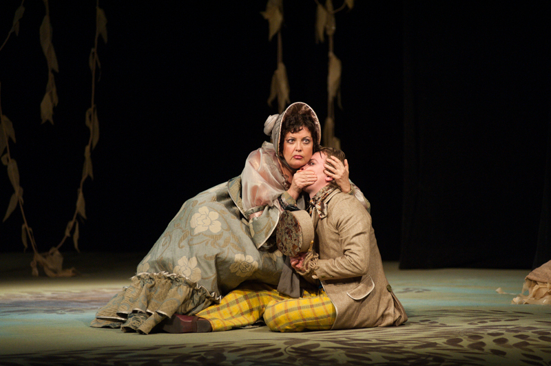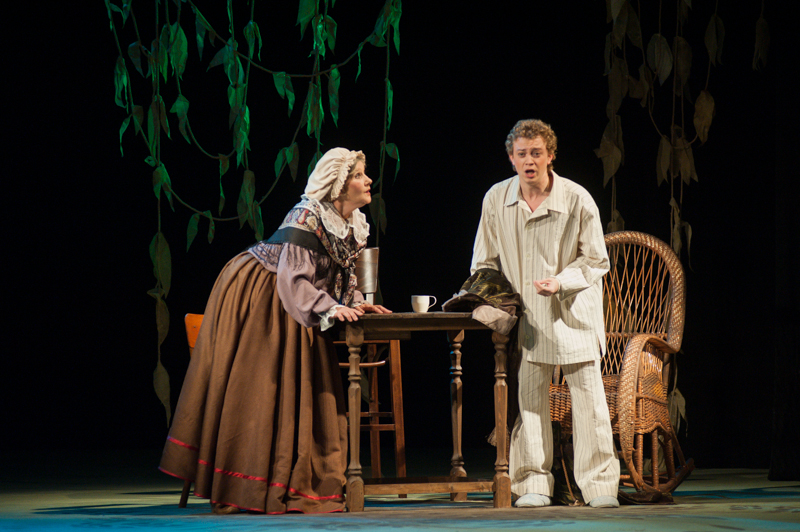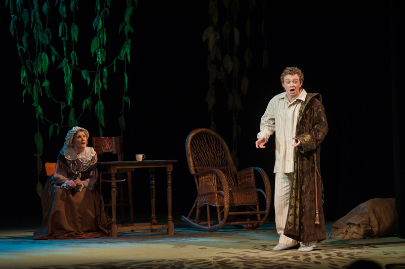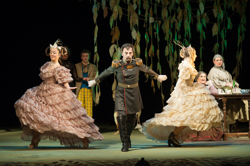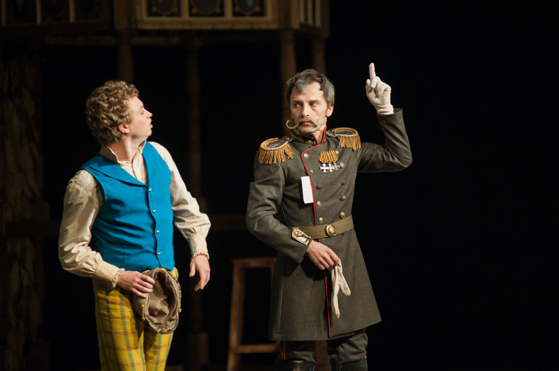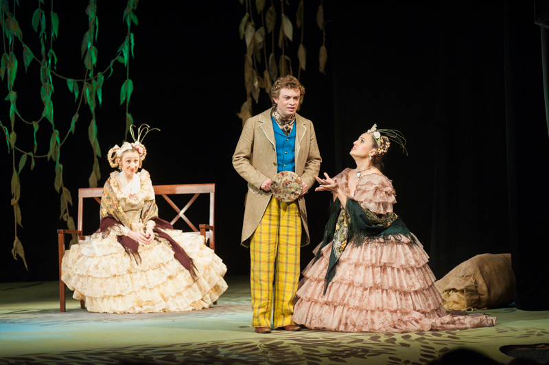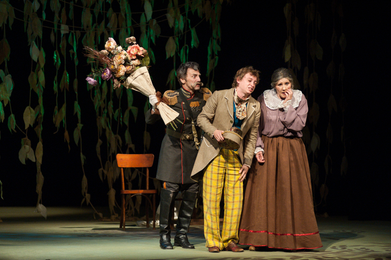 Есенина сделала то, что уже давно было пора сделать— вернула Островскому его былую весёлость. Хорошо известные, разобранные на цитаты и порядком набившие оскомину шутки звучат как в первый раз, то есть смешно. Актёрский состав этому активно помогает богатой мимикой и выразительной пластикой. Временами смахивает на клоунаду, и непременно найдётся тот зритель, который во всеуслышание обвинит в этом новую постановку. Однако вряд ли объявится тот, кто посетует на скуку. Нескладный фантазёр Бальзаминов (в исполнении Дмитрия Мазепы), роскошная плутовка-сваха Гавриловна (Нина Бурдыгина), по-стариковски боязливая мать Бальзаминова (Светлана Гузикова), орёл-мужчина Лукьян Лукьяныч (Андрей Кондрашов) уморительны и колоритны. Так, с шутками и прибаутками, любовными интригами и меркантильными мечтами, накладными усами и пышными кринолинами привычный Островский правит бал ровно половину спектакля. А потом классическая комедия превращается… превращается… в булгаковскую фантасмагорию. Сам же забавный и милый Бальзаминов оборачивается терзаемым демонами наживы героем Достоевского, жалким и больным. Перевоплощение происходит настолько неожиданно, что смех встаёт поперёк горла.