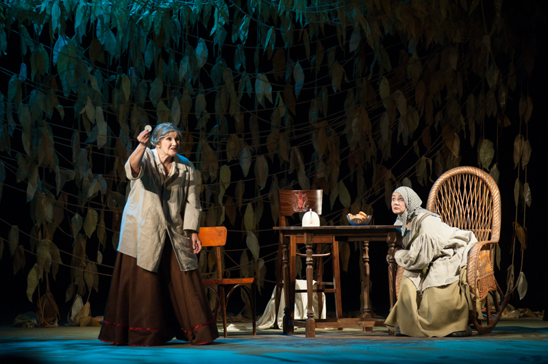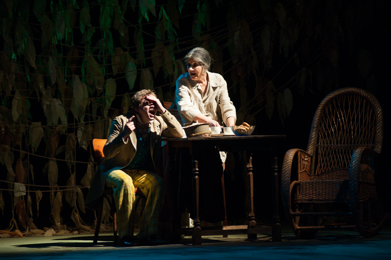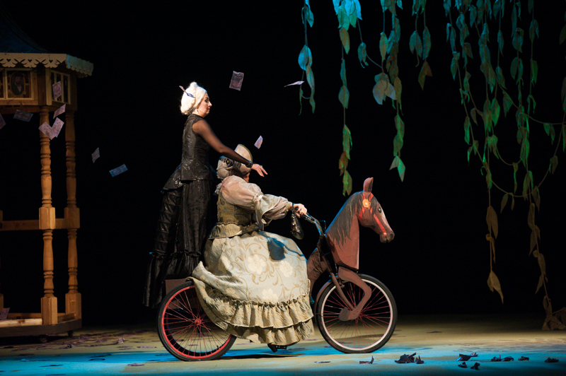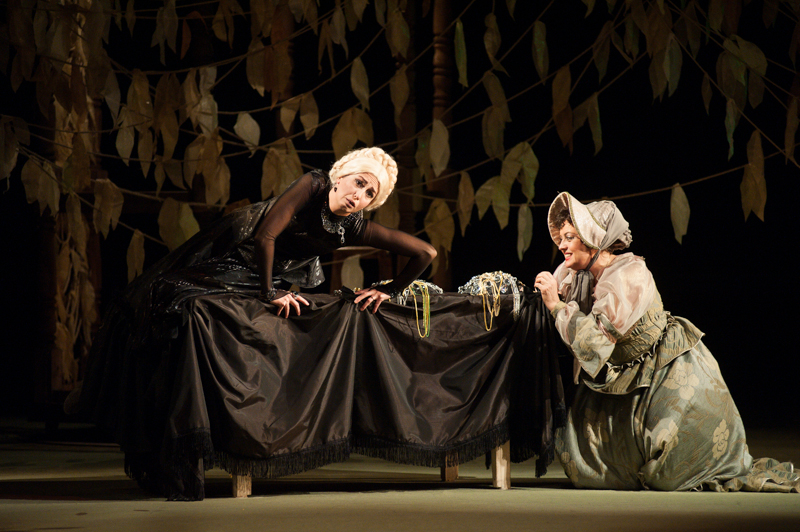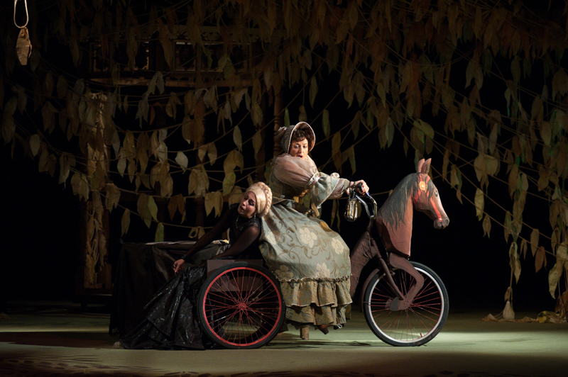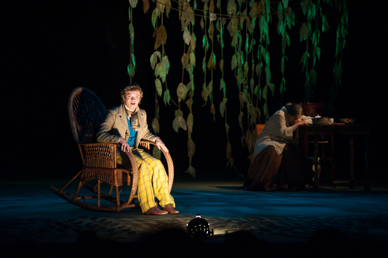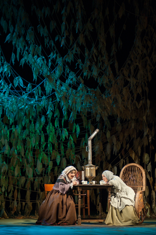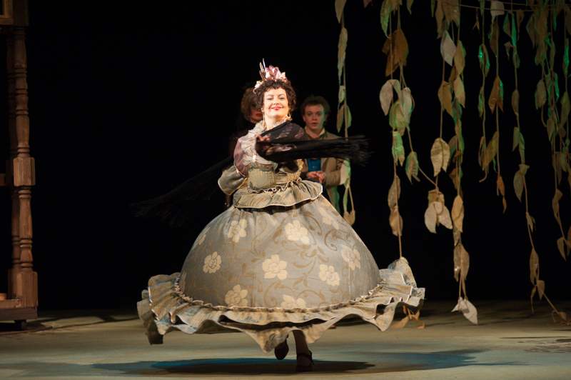Демоническое начало в постановку привносит Домна Евстигнеева в исполнении — как это ни странно — Марины Заланской. Благодаря юному возрасту рязанской актрисы старуха Белотелова сбрасывает с полсотни лет и превращается в женщину-вамп, наглядно иллюстрируя признание самого Бальзаминова: «А мне все богатые невесты красавицами кажутся». Духовные трансформации героев проходят в декорациях Юлии Ксензовой и под музыку Владимира Устинова. Работу обоих хочется отметить особо — предметный и звуковой мир спектакля экспрессивны и неожиданны, под стать динамичному действию, не дают отвлечься и перевести дух посреди постановки.