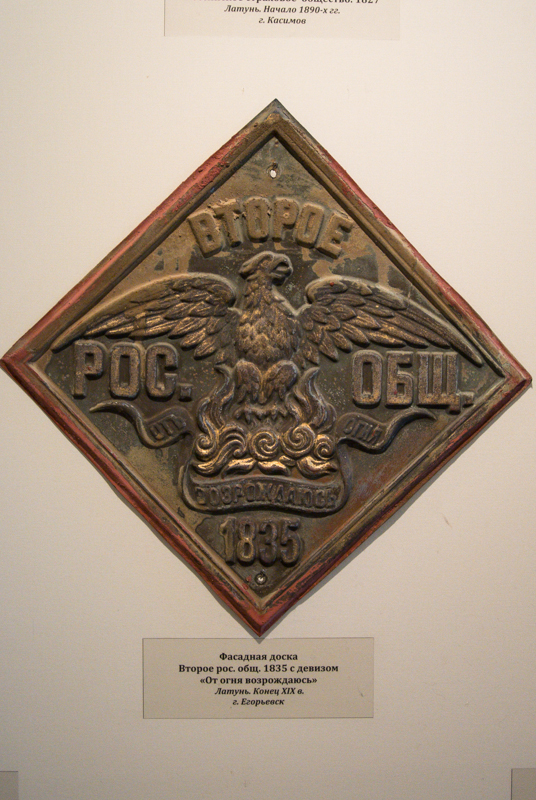 О своём неожиданном увлечении сам Александр Дударев рассказывает оживлённо и удивительно интересно. Оказывается, страховые таблички появились в Англии в конце XVII века. В те времена в городах ещё не действовала централизованная пожарная охрана, а на пожар выезжали разрозненные конкурирующие бригады, принадлежащие разным страховым компаниям, которые прямо на месте выясняли, кто будет тушить. Доходило до курьёзов — пока пожарные дрались за право потушить огонь, дом успевал сгореть. Поэтому было решено вешать на застрахованные дома таблички с указанием компании-страховщика. Со временем такая практика была перенята Европой, оттуда в XIX веке перешла в Россию. Правда, на русской земле страховые доски приобрели скорее рекламное значение, а сами таблички украшались символичными изображениями. Самыми распространёнными были восстающая из огня птица Феникс, символизирующий защиту щит, символ стабильности якорь. Большие доски вешались на дома, маленькими же отмечали застрахованные квартиры в доходных домах или грузы при транспортировке. И те, и другие, разумеется, имеются в рязанской частной коллекции.