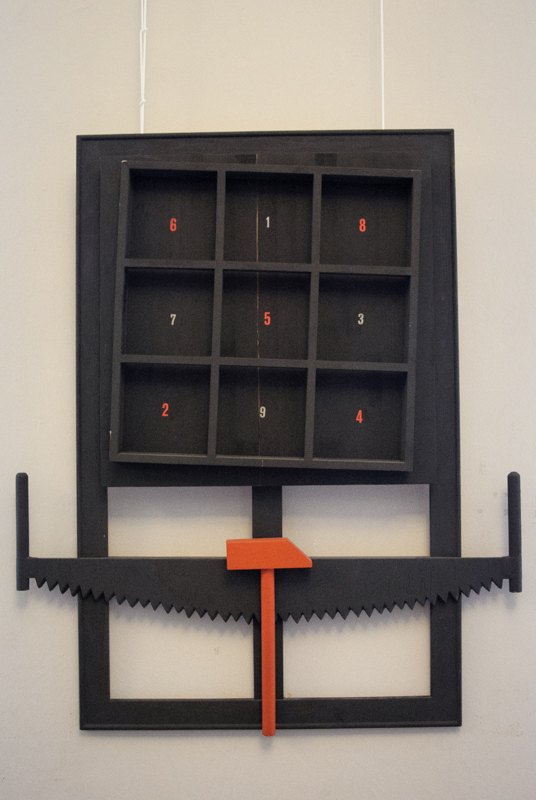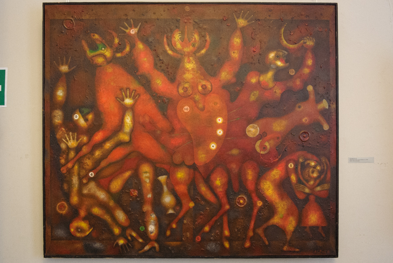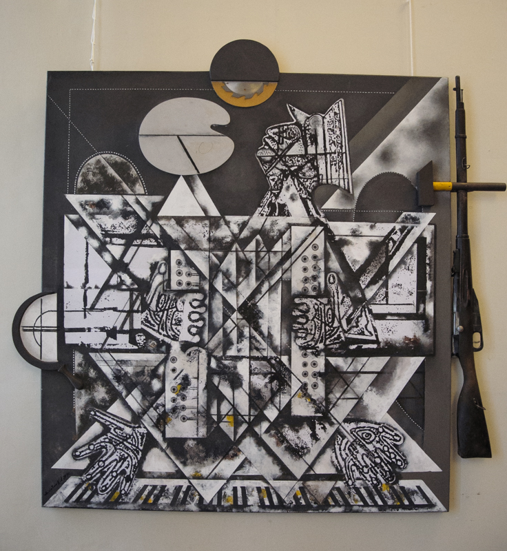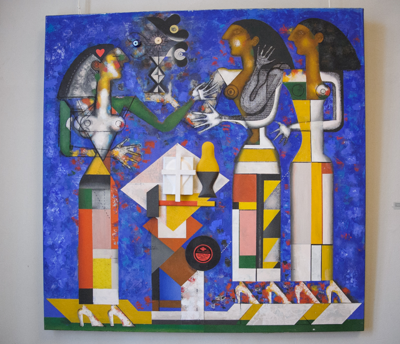 7 ноября в залах Рязанского художественного музея открылась выставка столичных художников и мастеров с мировыми именами Ольги Булгаковой и Александра Ситникова (живопись, объекты). И это именно тот случай, когда лучше один раз увидеть оригиналы, чем сотню раз разглядывать пусть хорошие, но всё же репродукции. С первого же взгляда выставка сбивает и с ног, и с толку. Гигантские холсты Булгаковой, развешанные зачастую стык-в-стык, без зазоров, задают особенную атмосферу всего пространства, увлекая зрителя своим ритмом и бешеной энергетикой. Острые, меткие и жёсткие объекты Ситникова при этом являются словно обратной стороной медали этого непростого знаменитого творческого и семейного дуэта. Впрочем, определить, кто из них является «dark side of the moon» вряд ли получится.