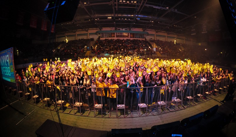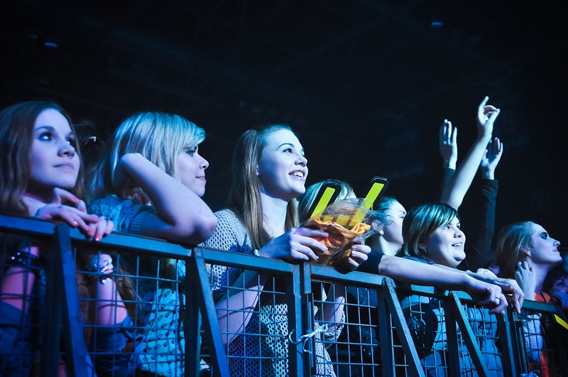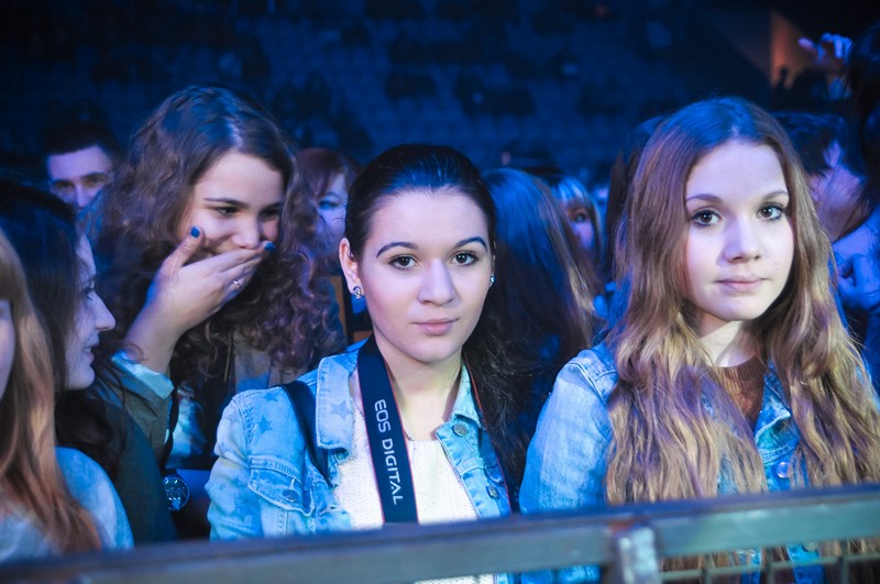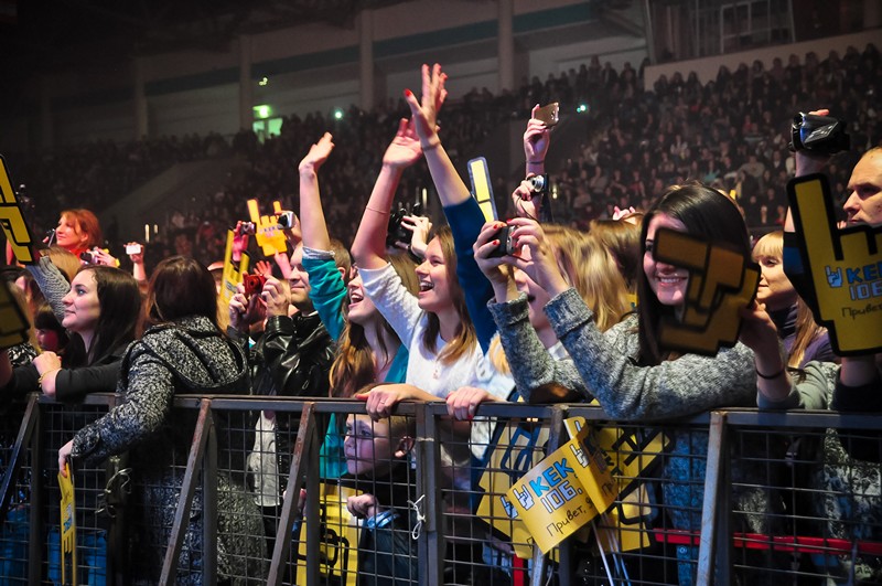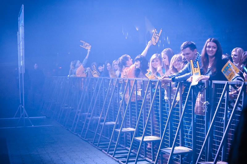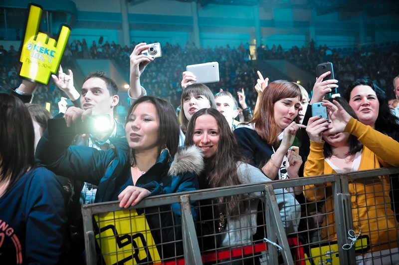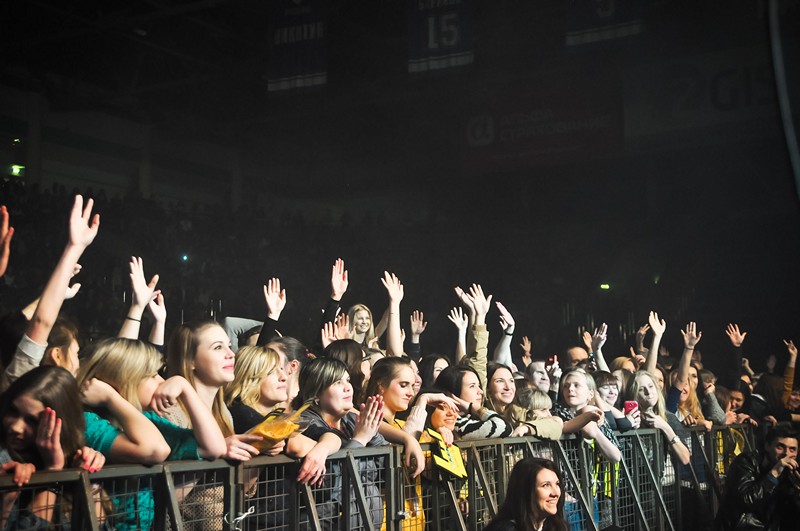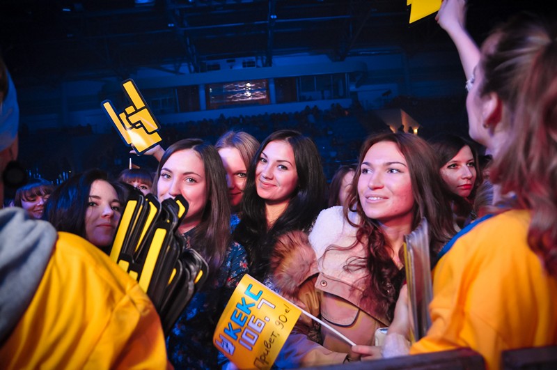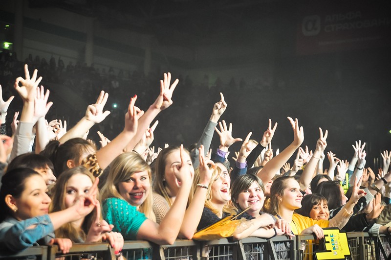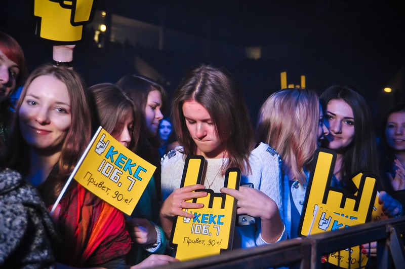 К вечеру Дворец спорта «Олимпийский» постепенно наполнялся гостями торжества. Не боясь мороза, поклонницы, как в той самой песне, облачились в «короткие юбчонки». Перед концертом чуть подмороженную публику развлекли танцевальной зарядкой и раздачей (а точнее, раскидыванием со сцены в народ) маек с логотипом любимого радио. И вот под внезапный вязкий драм вышла звезда, которую все так ждали. Зал взорвался громогласным визгом радости, и началось!