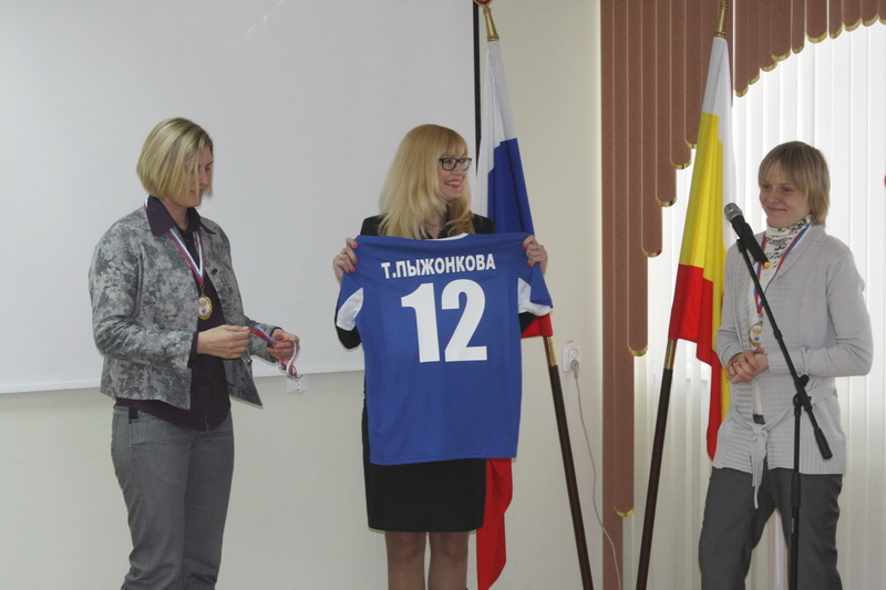 Затем Ксения Цыбутович и Вероника Шульга поблагодарили Татьяну Пыжонкову за внимание к команде, назвав министра самым преданным болельщиком коллектива. На память о «золотом» успехе «десантницы» вручили Татьяне Пыжонковой майку клуба с номером «12» и золотую медаль победителя всероссийских соревнований. Завершилось церемония общей фотографией на память.