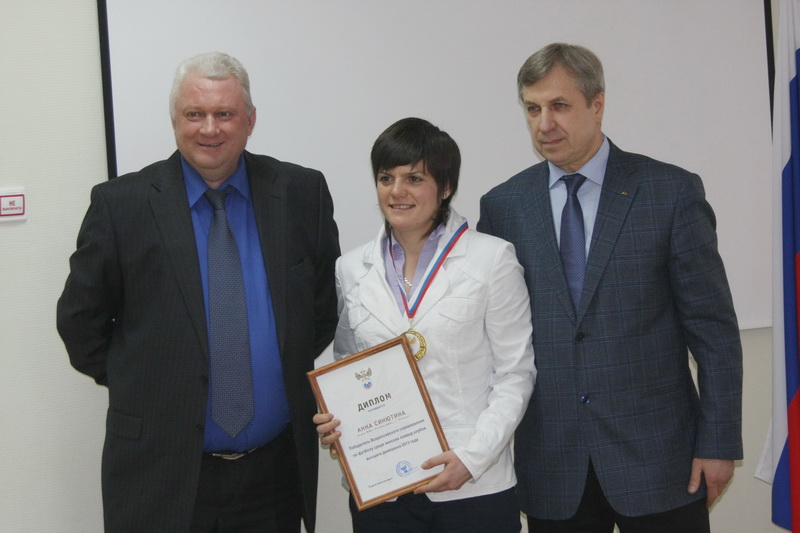 Сергей Сидорский поздравил девчонок с высоким спортивным достижением, добавив при этом, что удержать завоёванные позиции гораздо труднее, чем завоевать. Вице-президент РФС вручил директору клуба Розе Ярайкиной памятную плакетку Российского футбольного союза, а капитану команды Ксении Цыбутович диплом за победу во всероссийских соревнованиях. После этого «золотые» медали и дипломы были вручены игрокам, тренерам, врачебному и административному персоналу клуба.