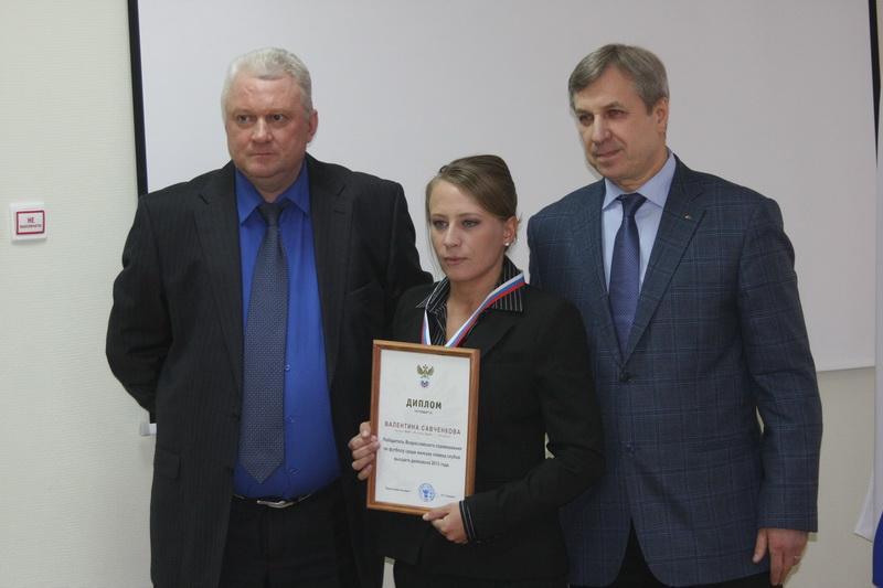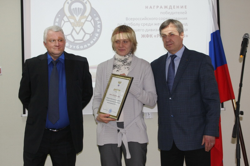 В конференц-зале стадиона «Спартак» 16 января прошла церемония вручения наград Российского футбольного союза (РФС) ЖФК «Рязань-ВДВ» — победителю Всероссийского соревнования по футболу среди женских команд Высшего дивизиона 2013 года.