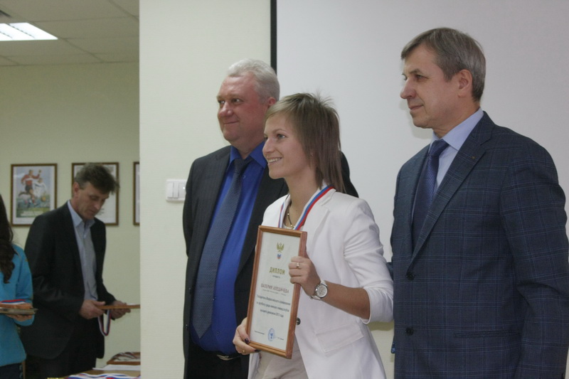 Сергей Сидорский поздравил с успехом и спортивного министра области Татьяну Пыжонкову, вручив её букет цветов и памятный подарок РФС. В своём выступлении Татьяна Пыжонкова напомнила, что на церемонии вручения бронзовых медалей чемпионата России сезона 2012-2013 Вероника Шульга твёрдо пообещала, что на следующем турнире они будут первыми. Слова оказались пророческими.
