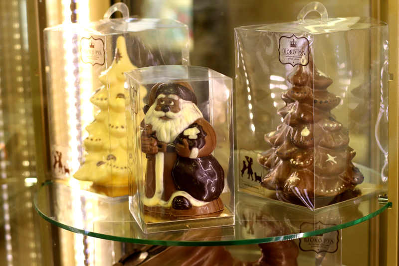 Под брендом «Шоко Руа», что, кстати, означает «шоколадный король», можно заказать подарок по любой цене. Презентом в качестве комплимента, подарком ко дню свадьбы, рождения, ангела или на юбилей может стать декоративная конфета ручной работы. На выбор: мокко, вишня, трюфель, лесной орех, маракуйя, фисташка, манго, клубника, зелёный чай, кокос и кофейное зерно — всё это пустят в начинку вашей личной конфеты. А для тех, кто пока боится своих шоколадных фантазий, мастера уже придумали немало коллекций, среди которых животный и растительный мир — «Flora&Fauna», модели всяческих автосредств — «Transport», тема олимпиады — «Sport», празднично-отпускная коллекция — «Holiday», ко Дню влюблённых — «Valentine’s Day», к свадьбе и тому подобному — «My Love», к любимому зимнему празднику — «New Year», а также коллекция «Creative», где шоколатье обещает согласиться на любую шоколадную авантюру.