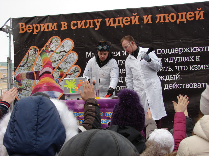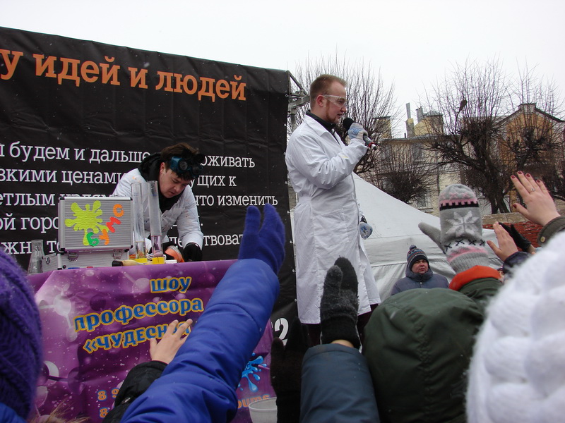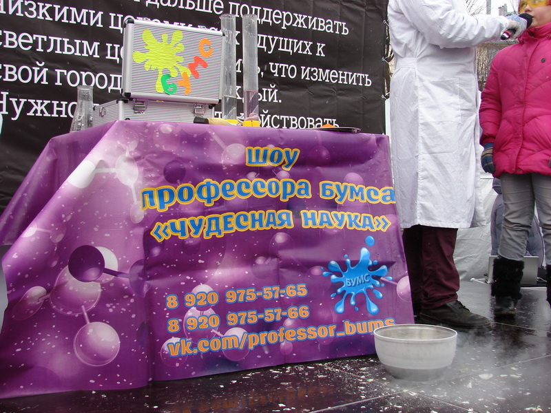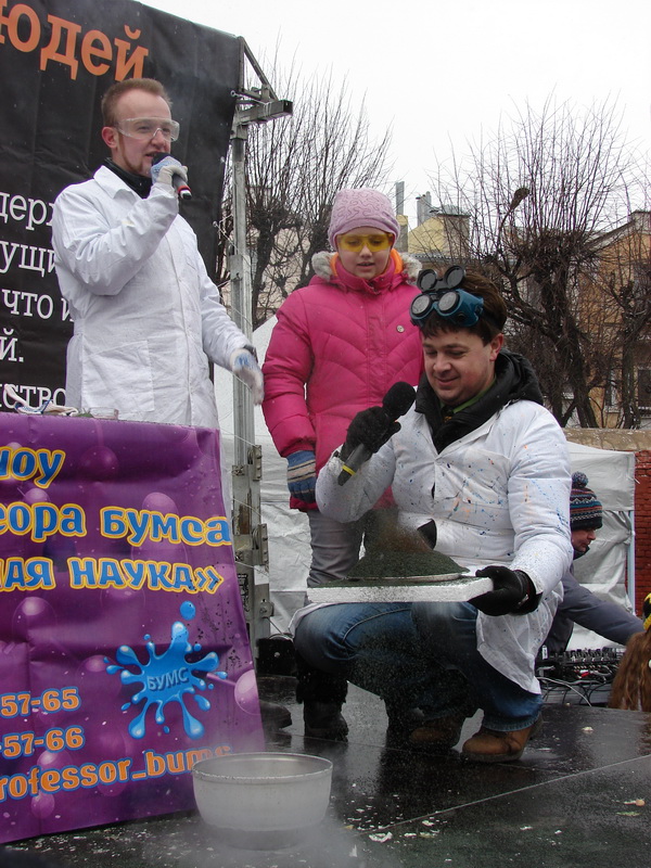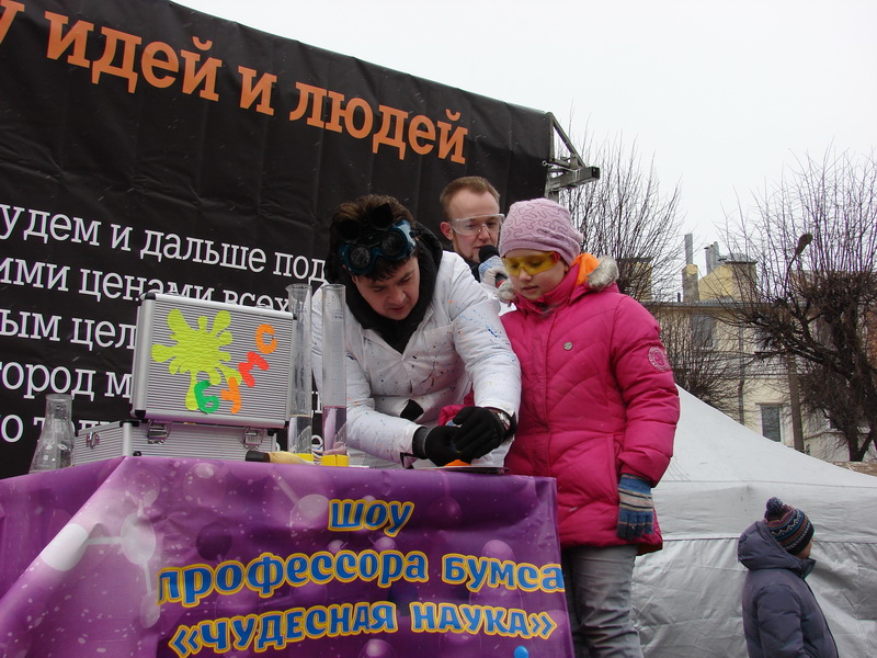 Одним из самых ярких событий праздника стало проходившее на сцене Шоу профессора Бумса «Чудесная наука»», рассказывающее с помощью интересных и понятных не только для взрослых, но также и для маленьких рязанцев экспериментов о различных научных фактах. Дети смогли посмотреть, как именно делаются оптические иллюзии, собственными руками разбить банан (это вполне возможно, если банан предварительно погрузить в жидкий азот) и даже устроить извержение небольшого вулкана.
