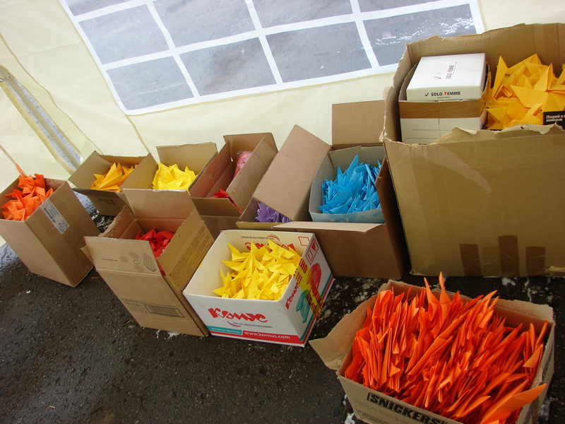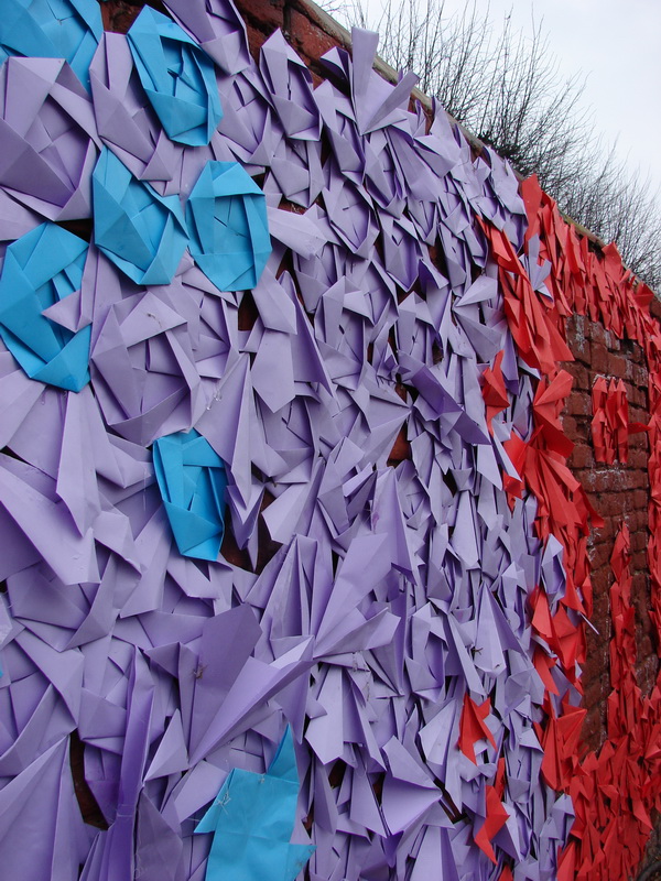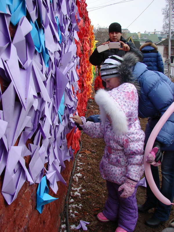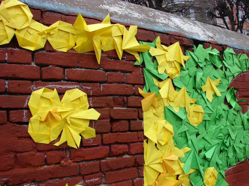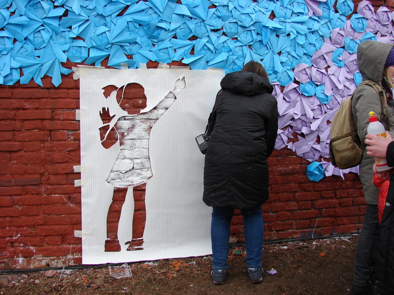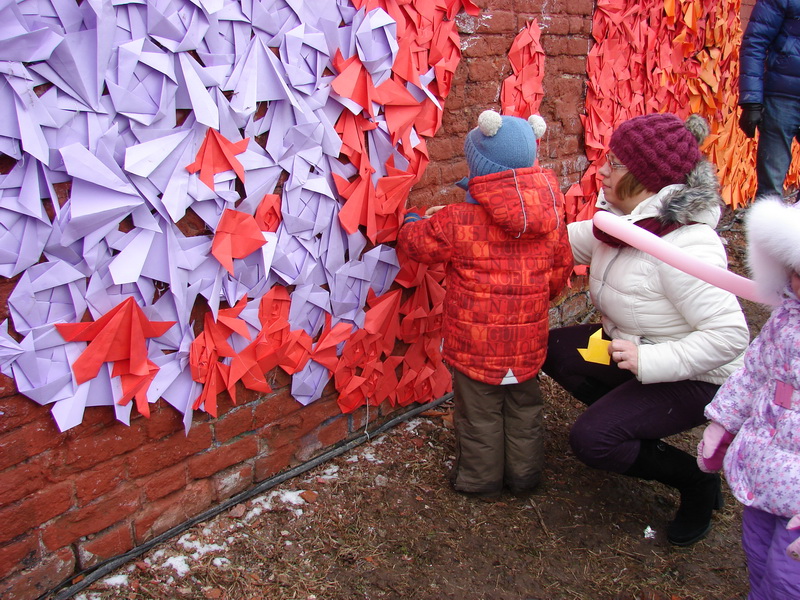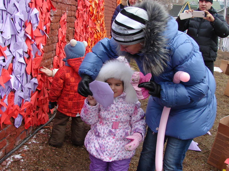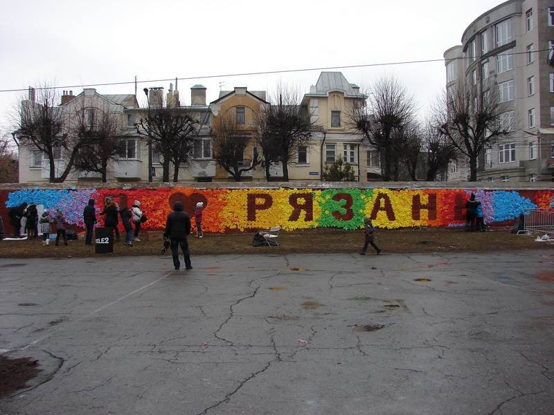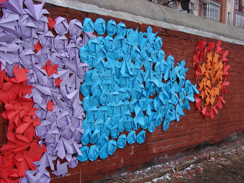 Как рассказала специалист по связям с общественностью компании Tele2 Светлана Огнева, рязанские школьники, участники мастер-классов в ТРЦ, а также гости праздника, поработавшие на проходивших уже в парке мастер-классах, сложили из цветной бумаги более 13 тысяч цветов. Все эти цветы-оригами затем разместили на стене, составив из них за три часа надпись «Я люблю Рязань». Идея преображения городских пространств с помощью оригами пришла из Европы, где этот вид стрит-арта уже не является новинкой.