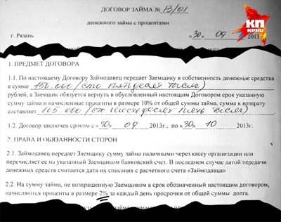 Договор займа предусматривал, что через месяц Николай вернет конторе 165 000 рублей. И по нему же за каждый день просрочки начислялось 2% от общей суммы долга. Если 30 сентября 2013 года пенсионер брал 150 000 рублей, то к концу года сумма его долга перевала отметку в полмиллиона рублей.