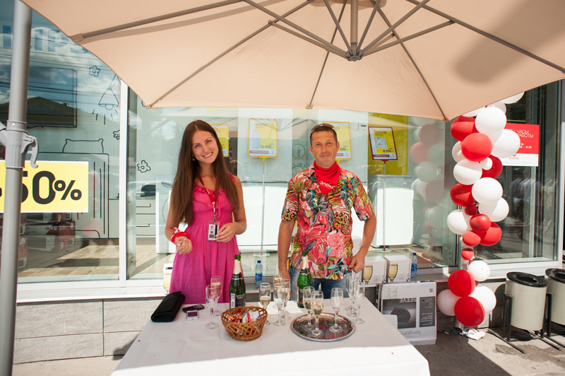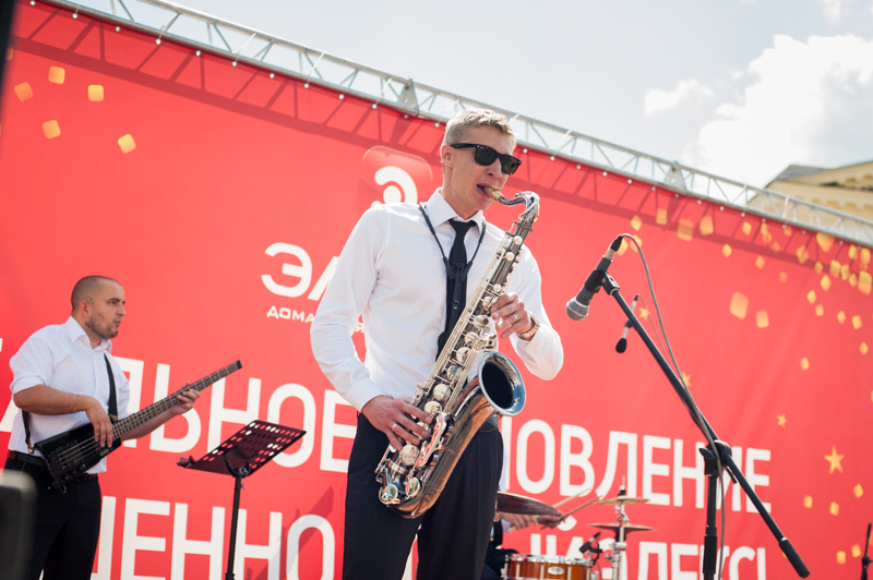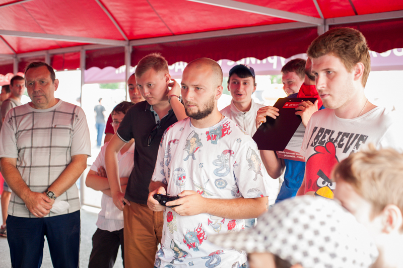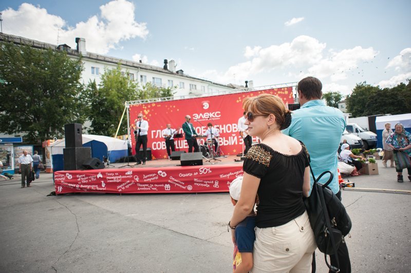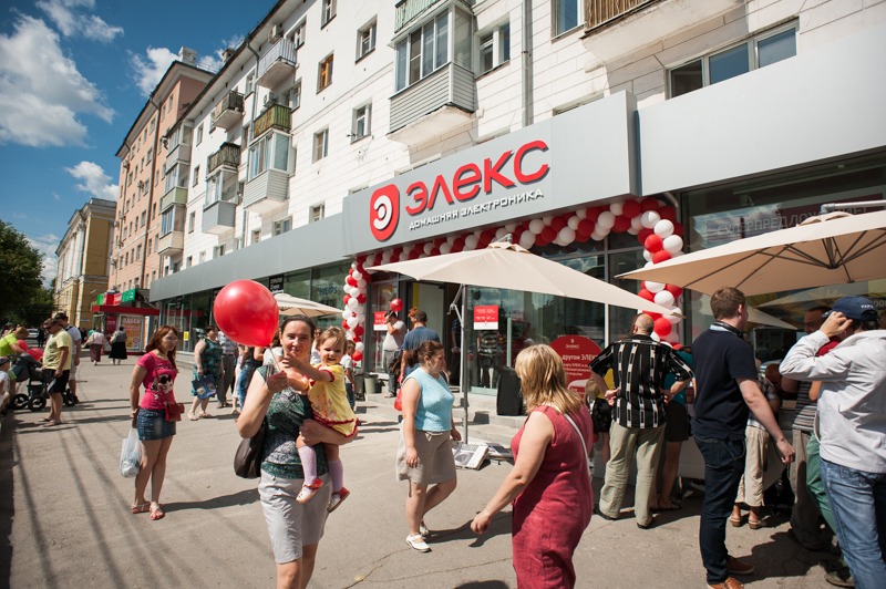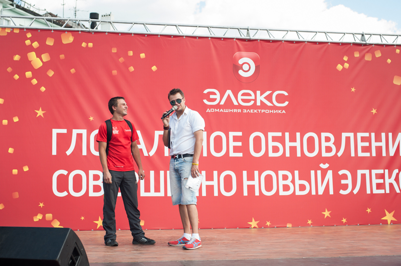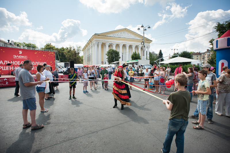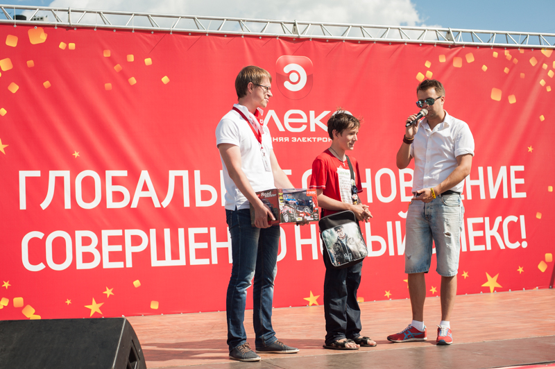 Конечно же, открытие «Элекса» не ограничилось одними скидками. Праздник при поддержке партнёров — Сбербанка и МТС — развернулся на всю Театральную площадь, где нашлось место зрителям и участникам всех возрастов. Гуляние прошло в лучших традициях семейного праздника, без лишней помпы и скучных официальных выступлений, зато под заводную музыку любимцев публики группы «Timers». Прямо в центре города вырос настоящий детский городок с батутом, аниматорами и мороженым по 18 копеек. Дети постарше и молодые отцы оккупировали игровую зону: тут прошёл большой турнир на игровых приставках X-Box и PS4. Соревноваться бойцам виртуального фронта пришлось в футболе, танцах и гонках Grand Tourismo. Но сражаться было за что: победитель получил главный приз — X-Box One, самую актуальную консоль в современном техническом мире. Любители оффлайновых развлечений состязались в гонках на радиоуправляемых машинках на специальной, проложенной тут же на площади трассе. Лучшему пилоту достался крутой джип на радиоуправлении.