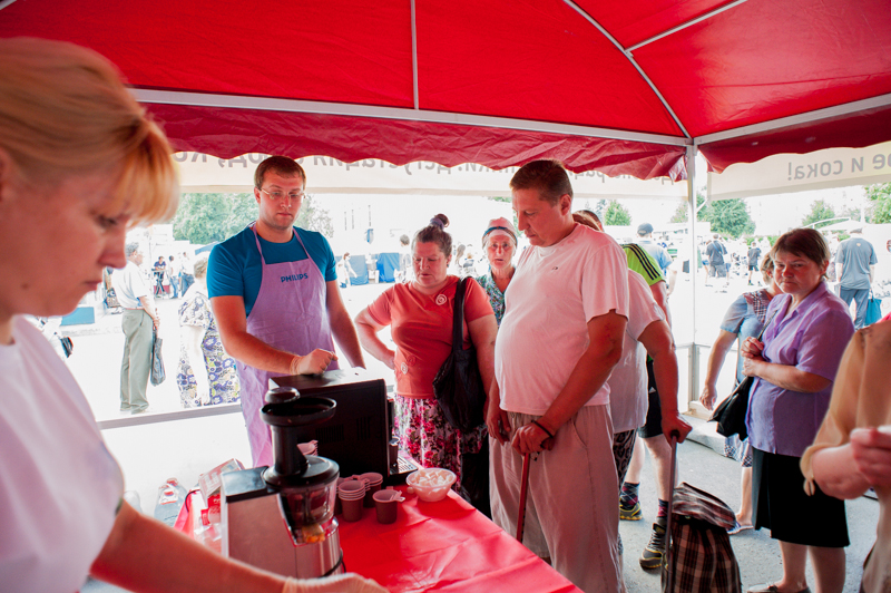 Но одними игрушками сыт не будешь, и организаторы праздника поняли эту фразу буквально. На протяжении всего дня в отдельном шатре шла демонстрация техники Moulinex с дегустацией всех приготовленных блюд. Наибольшим спросом пользовалась кофемашина, очередь за вкусным свежее сваренным кофе не прекращалась до окончания акции. А опытные хозяйки увлечённо постигали тонкости работы мультиварки и хлебопечки. Наконец, вечером на Театралке собралась молодёжь, чтобы стать свидетелями грандиозного танцевального баттла от студии «Art Rise» на призы магазина «Элекс». Зрители увидели самые зрелищные номинации в сфере модного би-боинга All Styles Battle и Break Dance 1х1.