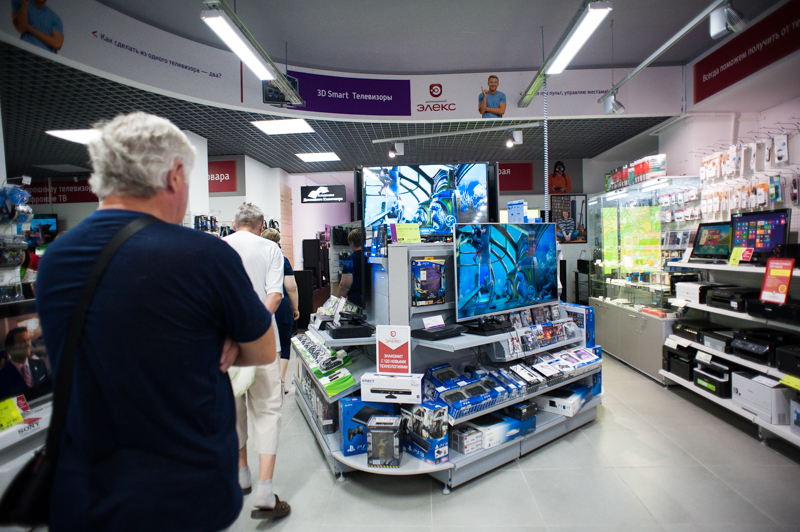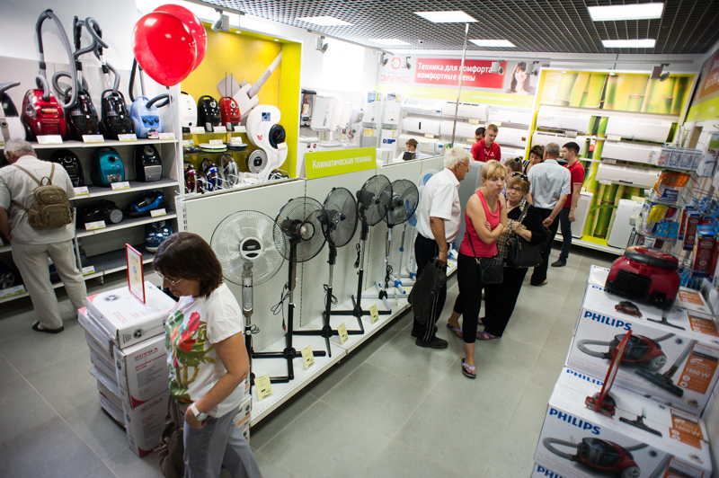 Нововведения начинаются, как и положено, с фасада. Витрины оформлены в виде квартиры — весьма нетривиальное решение для нашего города. Как рассказывают организаторы, дизайн-проект для российской сети «Элекс» подготовили голландские партнёры. Им-то и пришло в голову развернуть настоящее шоу «За стеклом». Здесь есть всё: от прихожей до спальни и кухни, а каждая комната оснащена по последнему слову техники. Самые современные телевизор и аудиосистема, холодильник и хлебопечка, фен и пылесос, варочная панель и телефон — удобству «выставочной» квартиры можно только позавидовать. Хотя завидовать-то как раз не стоит — каждую вещь из представленных на витрине можно увидеть, пощупать и приобрести в самом магазине.