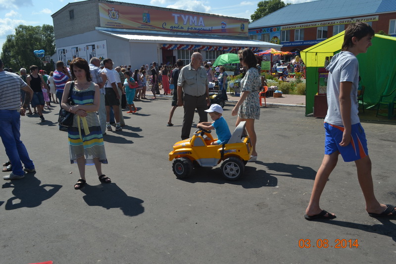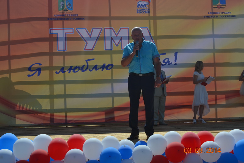 Второй день народных гуляний — 3 августа — начался с торжественной части, которую открыли глава муниципального образования Алексей Просянников и глава администрации Клепиковского района Сергей Карабасов. Они пожелали Туме процветания, а также наградили лучших представителей посёлка грамотами, благодарностями и ценными подарками. Также главы вручили награды победителям спортивных соревнований — импровизированные кубки и билеты в рязанский кинотеатр «Малина». К поздравлениям глав района присоединились глава Тумского городского поселения Владимир Шатайкин и глава местной администрации Виктор Лазарев. Они тоже не забыли отметить лучших тумчан своими наградами. Кстати, наград в этот день было немало: в этом году среди награждённых было немало спортсменов и работников культуры, которых поздравили начальник отдела культуры, молодёжной политики, физической культуры и спорта администрации Клепиковского района Станислав Строилов и директор Тумской детско-юношеской спортивной школы Алевтина Куликова. Украсили торжественную часть номера художественной самодеятельности, подготовленные силами артистов МКЦ Тумы. В завершении программы ведущие пригласили тумчан на площадь перед МКЦ вечером, чтобы посмотреть показательное выступление бойцов 137-го гвардейского парашютно-десантного полка, потанцевать и интересно провести время.