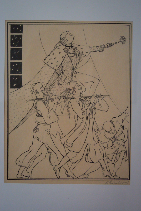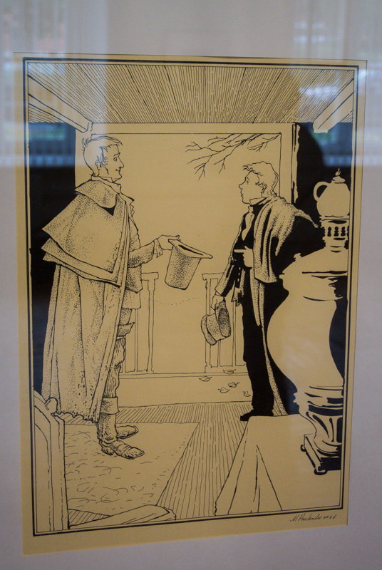 В экспозиции собрано всего понемножку. Тут и графические листы к сказкам Гофмана, и иллюстрации к биографии маркиза де Сада авторства Левера, и серия силуэтных рисунков тушью «Теневая игра Екатерины Великой», выпущенная в Германии отдельным альбомом, и работы из циклов разных лет: «Русские маскарады», «Русские праздники», «Фейерверки». В центре экспозиции — иллюстрации к роскошному коллекционному изданию рассказов Лескова, вышедшему в петербуржском издательстве «Vita nova». Серия графических работ была представлена издательством специально для экспонирования в Рязанском художественном музее. Визуальный ряд сопровождается эссе Павленко о природе иллюстрации, в котором автор в частности утверждает то, что рисунки литературе не нужны вовсе. Парадоксальное утверждение из уст признанного иллюстратора легко и доходчиво разъясняется в паре абзацев и раскрывает суть творческих приёмов и задач самого автора. Также на выставке на большом экране транслируется анимация Павленко, и следует заметить, что мультипликационные показы — крайне редкое явление в стенах музея.