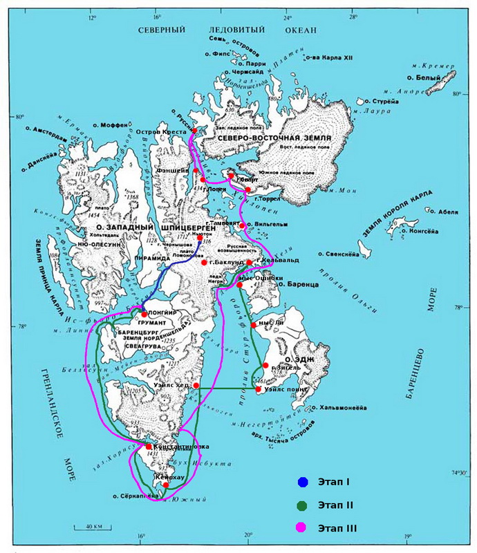 — Экспедиция «Шпицберген 2014» находится в северной части острова Западный Шпицберген. Севернее нас расположена группа из семи островов, и программа-максимум предусматривает посещение северной оконечности этих островов — острова Русса. Но получится это или нет, сказать мы не можем, потому что в Арктику реально пришла зима. Несколько дней мы живём при отрицательных температурах, и последние восхождения на горы в поисках геодезических сигналов мы совершили в настоящих зимних условиях. Горы покрылись снегом, правда, небольшим. Дуют пронизывающие ветра, и они представляют для нас сейчас основную проблему. Потому что ветра эти с севера. А это значит, что массы арктических льдов, постоянно присутствующих в районе северного полюса, приходят сюда, к северной оконечности Шпицбергена, и создают нам реальные препятствия.