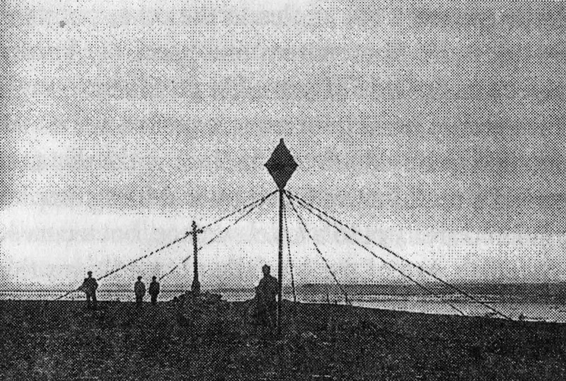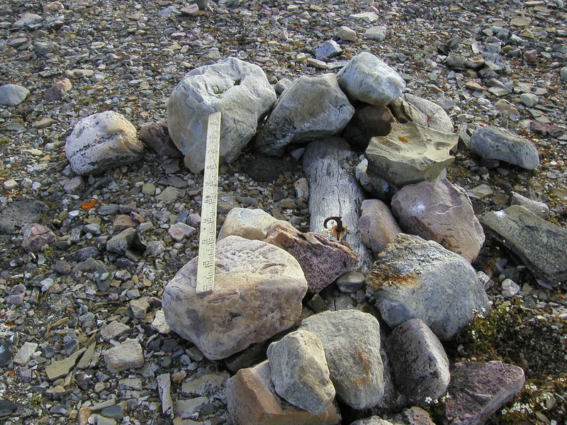 Того знака, который ставили здесь шведские исследователи, нет. Это был высокий металлический шест, увенчанный большим металлическим ромбом наверху, и всё это крепилось шестью растяжками. Мы нашли остатки этих растяжек, нашли остатки тросов, которые поддерживали сигнал в вертикальном состоянии, другие детали этого достаточно непростого сооружения.
