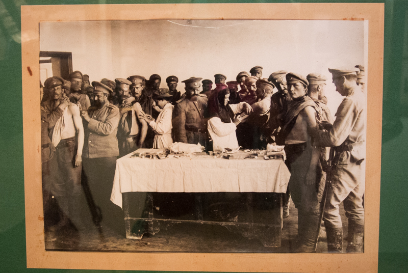 Тот факт, что выставка фотографий из военного альбома времён Первой Мировой войны проходит именно в стенах музея истории молодёжного движения, явление не случайное, считает заведующая экскурсионным отделом Елена Графшина. Дело в том, что музей располагается в бывшем доме губернатора. А последний «царский» губернатор Николай Кисель-Загорянский вступил в должность 2 сентября 1914 года — на следующий день после начала Первой Мировой войны. Именно на его плечи и легло бремя административной работы по организации рязанского ополчения, открытию губернских лазаретов, устройству городской жизни в военный период. По словам Елены Графшиной, губернатор не просто справился с возложенными задачами, но и получил за свои заслуги особую благодарность Николая II, когда император посетил с визитом Рязанскую губернию.