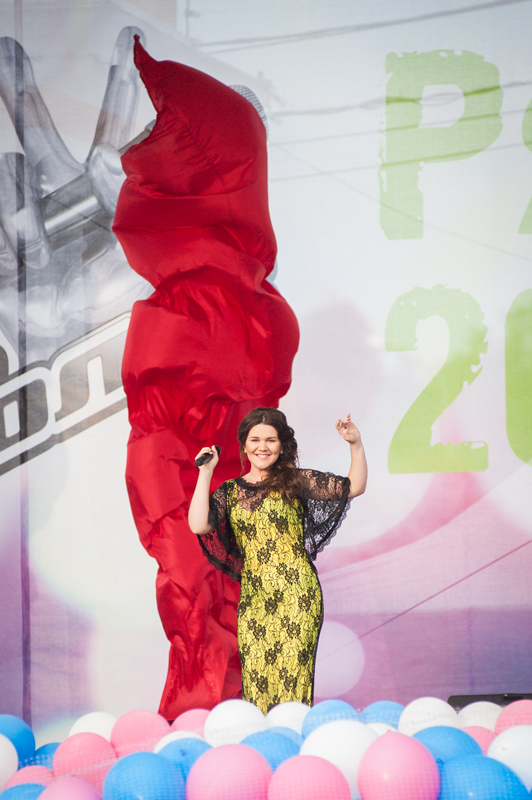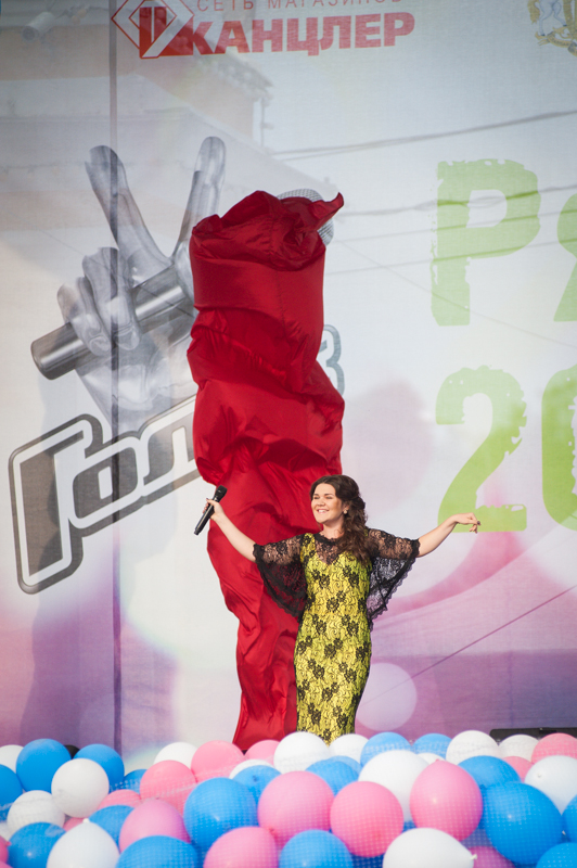 Пока Олешко общался с журналистами, на сцену вышли главные звёзды праздника. С появлением на телеэкране проект «Голос» напомнил публике, что красивой внешности и опытного продюсера для настоящего артиста недостаточно, а места на музыкальном Олимпе должны распределяться исходя из наличия талана, а не толщины спонсорского кошелька. В результате участники и детского, и взрослого «Голоса» изрядно подвинули многих дутых звёзд российского шоу-бизнеса. Рязанцы, которые местом субботнего отдыха выбрали «Грин-парк», смогли убедиться, что это произошло совершенно заслуженно.